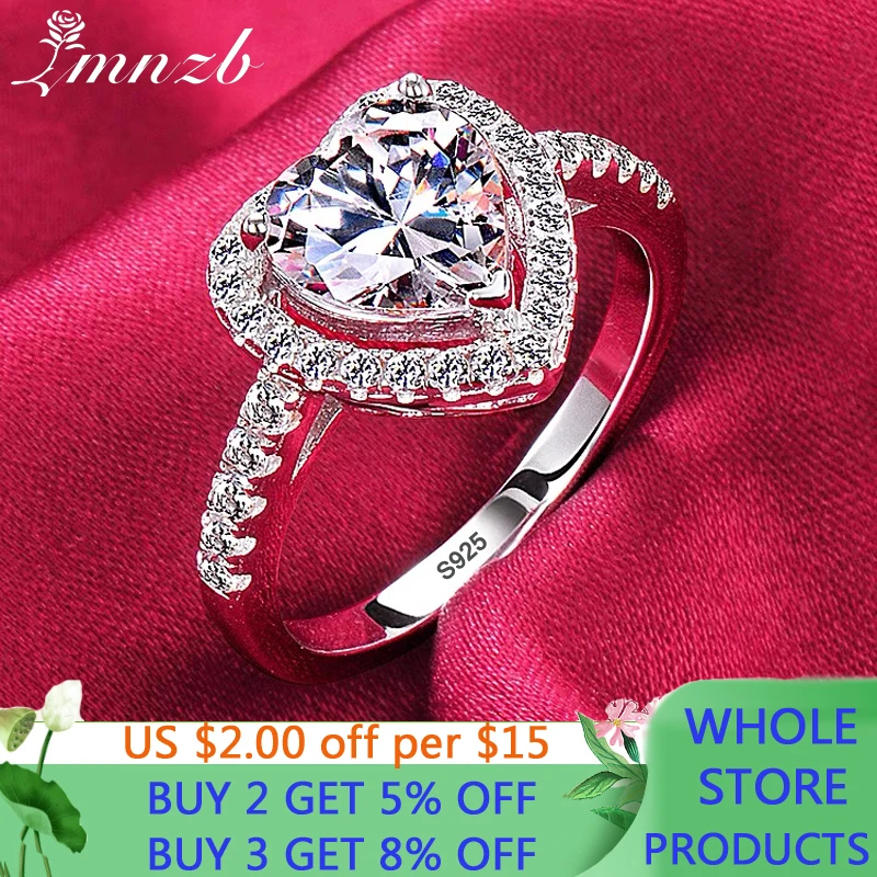 LMNZB 100% оригинальное 925 Стерлинговое Серебро Сверкающее CZ Кольцо с белым сердцем Love кольца для женщин Свадебные пальцы серебро 925 ювелирные изделия R09