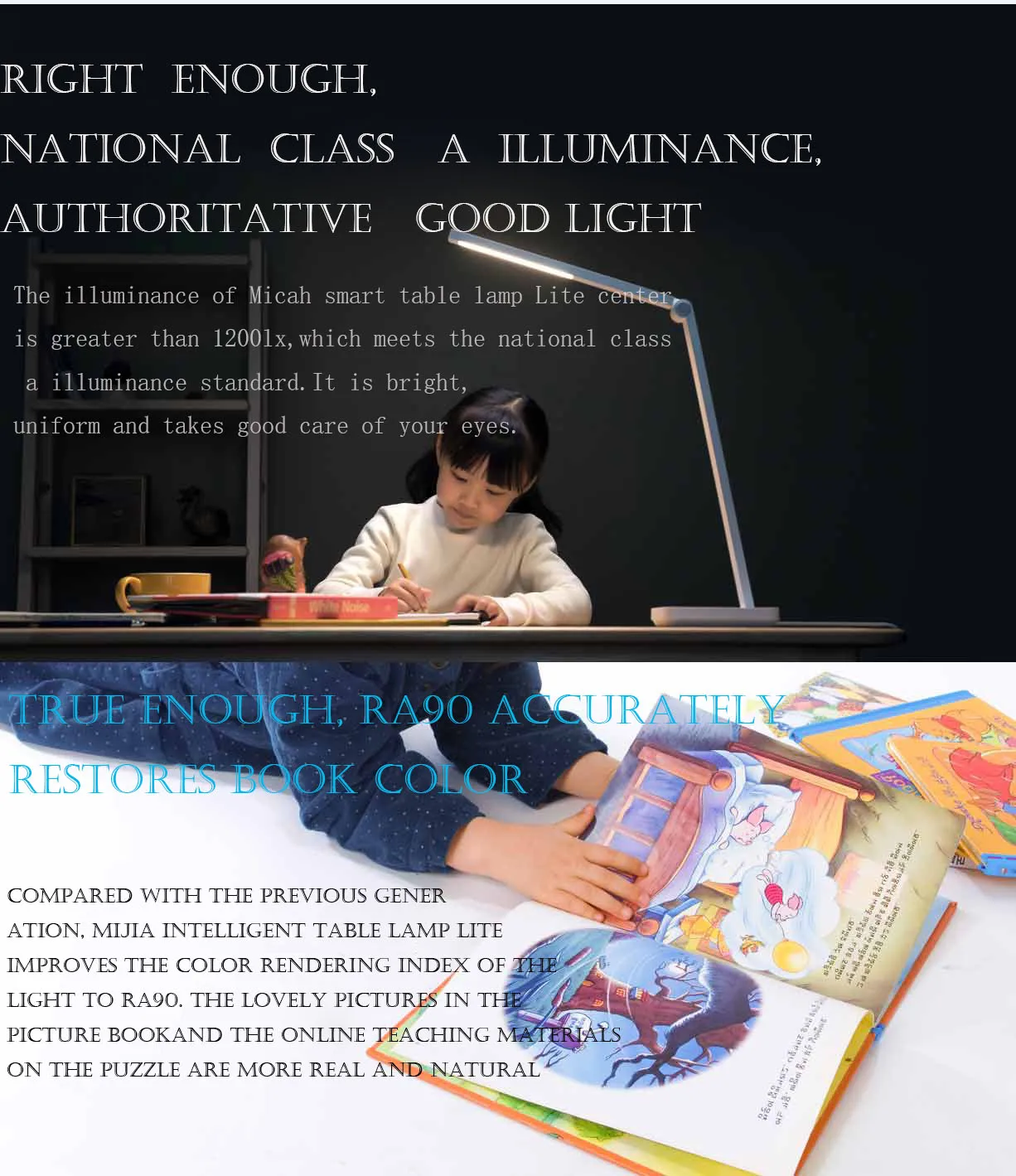 Умная настольная лампа Xiaomi Mijia Lite, умная настольная Светодиодная лампа Mi с защитой глаз, 4000K, лм, затемняющий Настольный светильник, ночник с приложением Mi Home