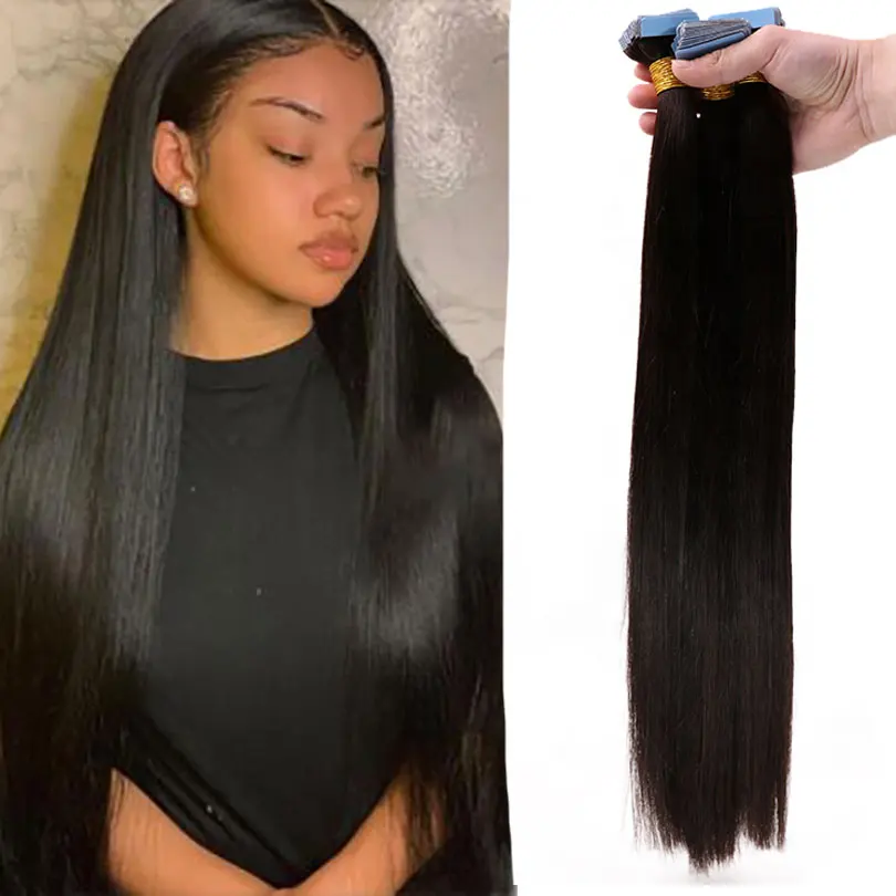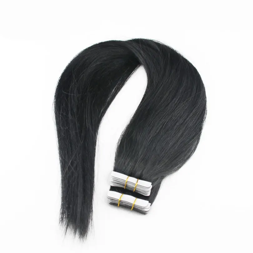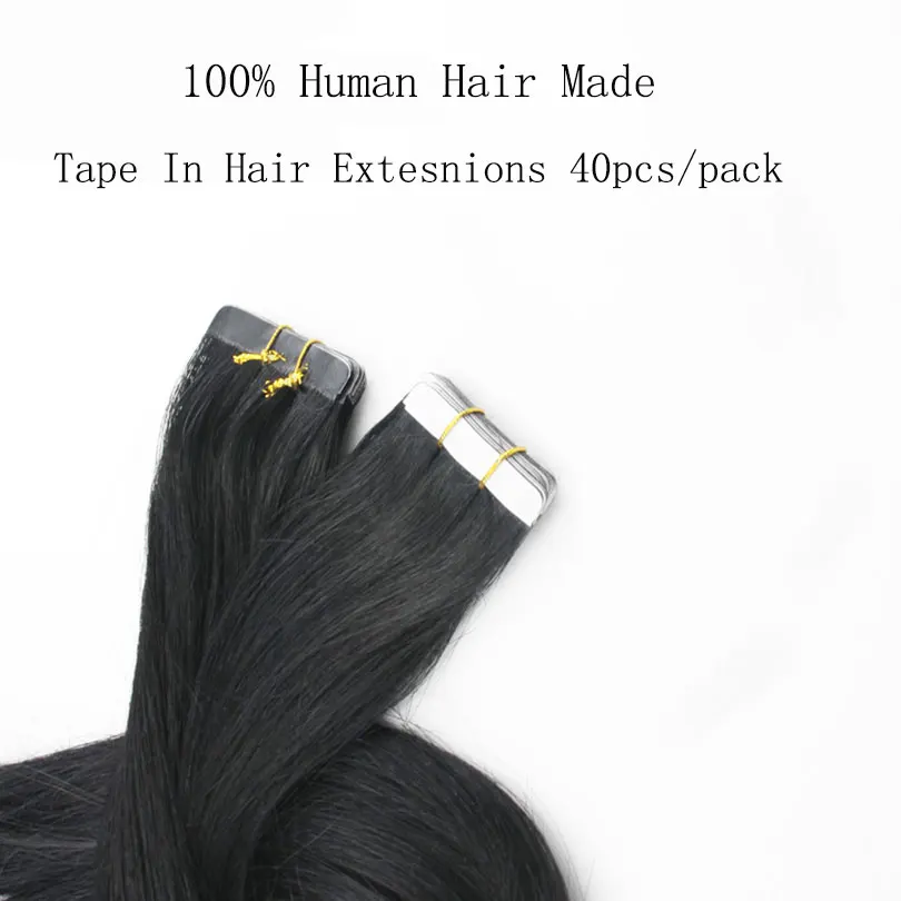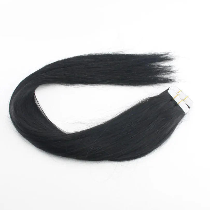 Малазийские шелковистые прямые ленты для наращивания человеческих волос 40 шт. невидимые волосы без повреждений на Клейкой Ленте