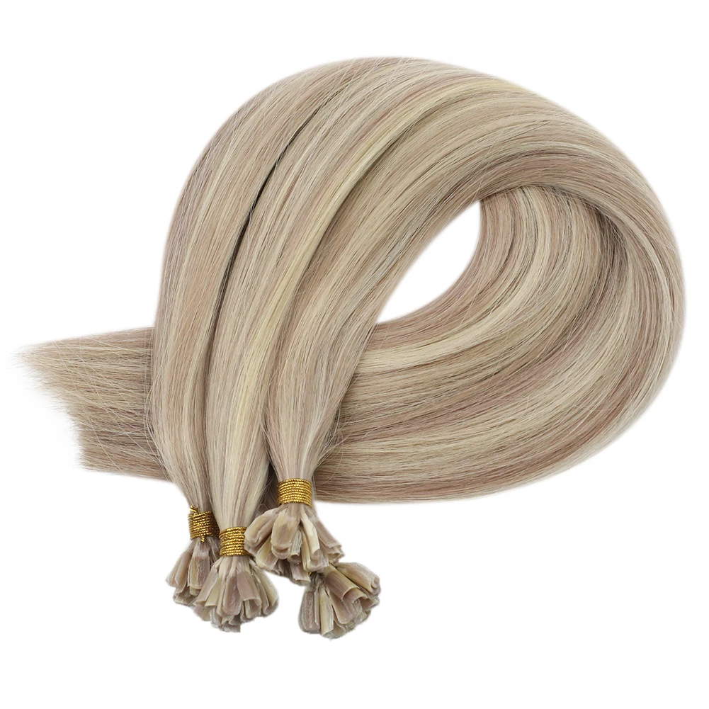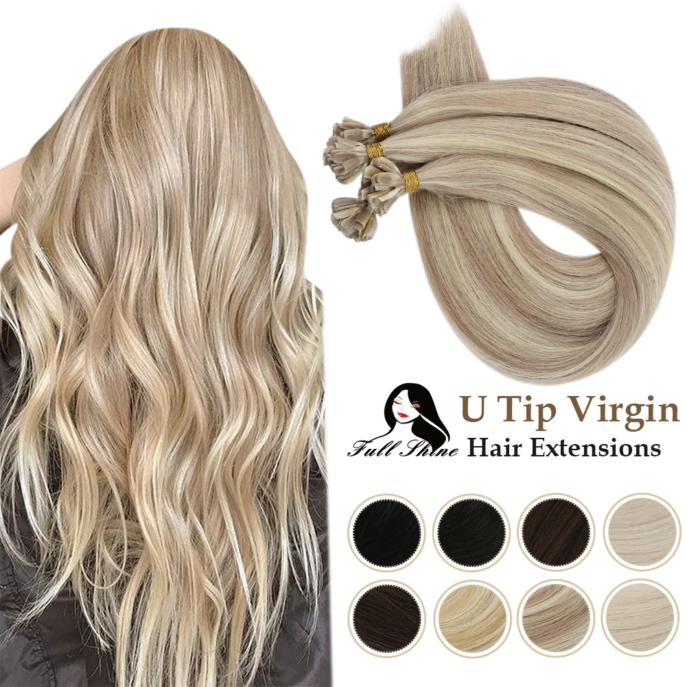 Полный блеск ногтей u-образные Девы волосы для наращивания балаяж цвет кератин клей бусины Предварительно Связанные человеческие волосы экстенсионы девственные волосы