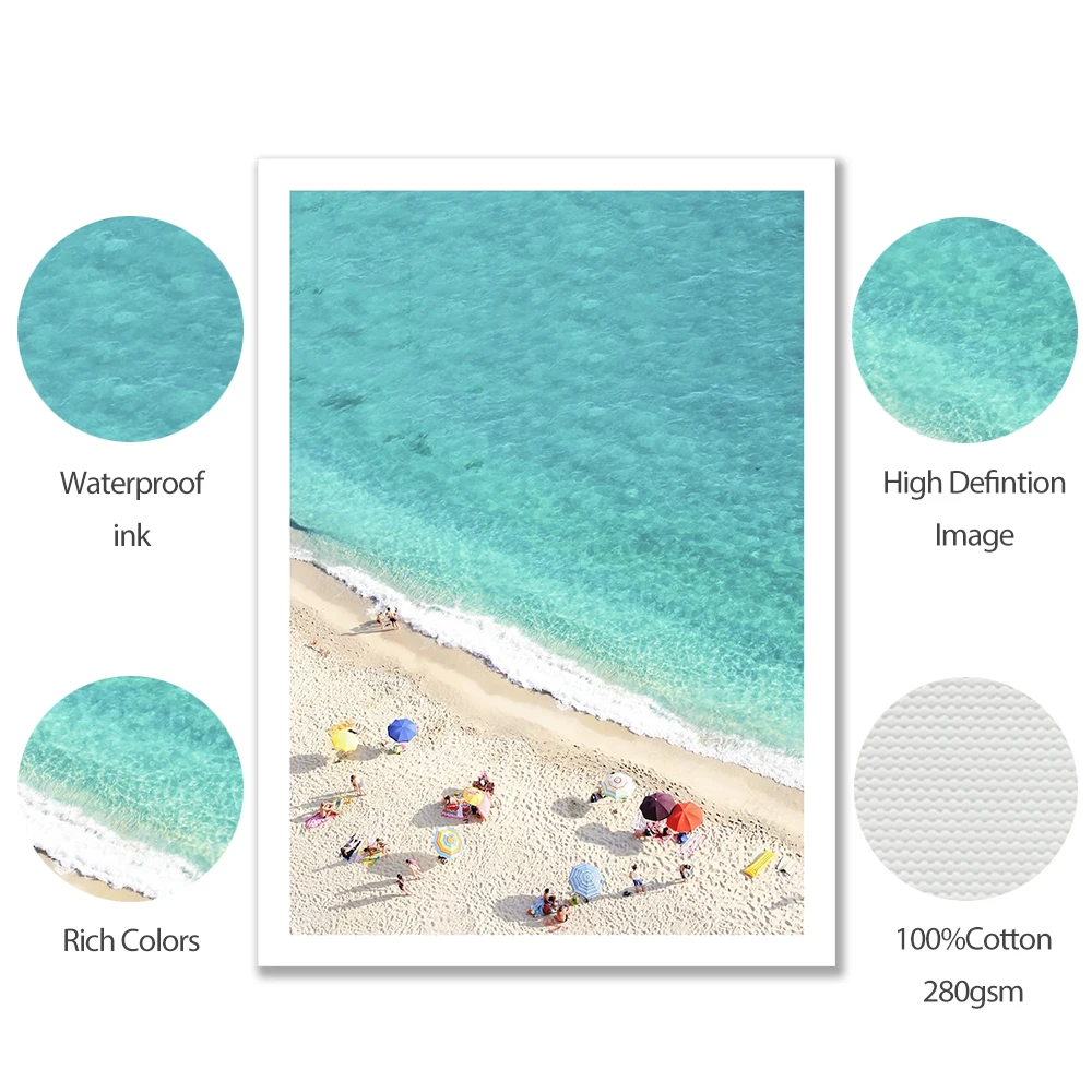 Настенная картина с изображением синего пляжа, Морского Пейзажа, красочные зонтики, холст, плакат для плавания и туризма, картина для гостиной, домашний декор
