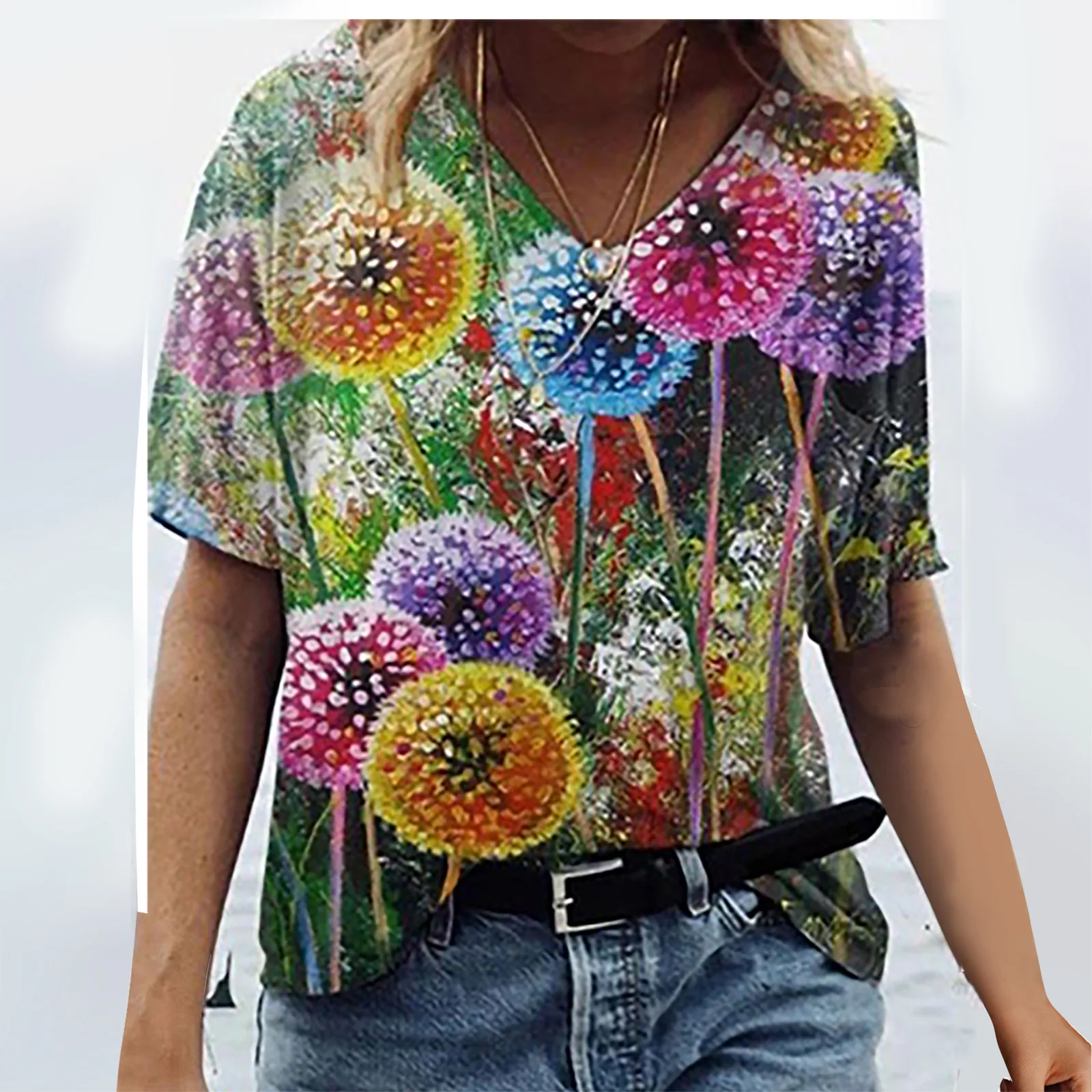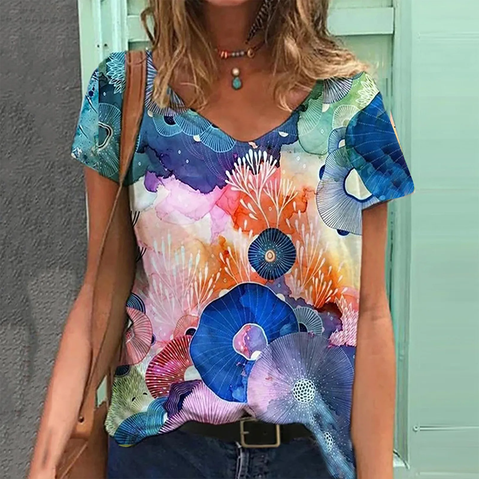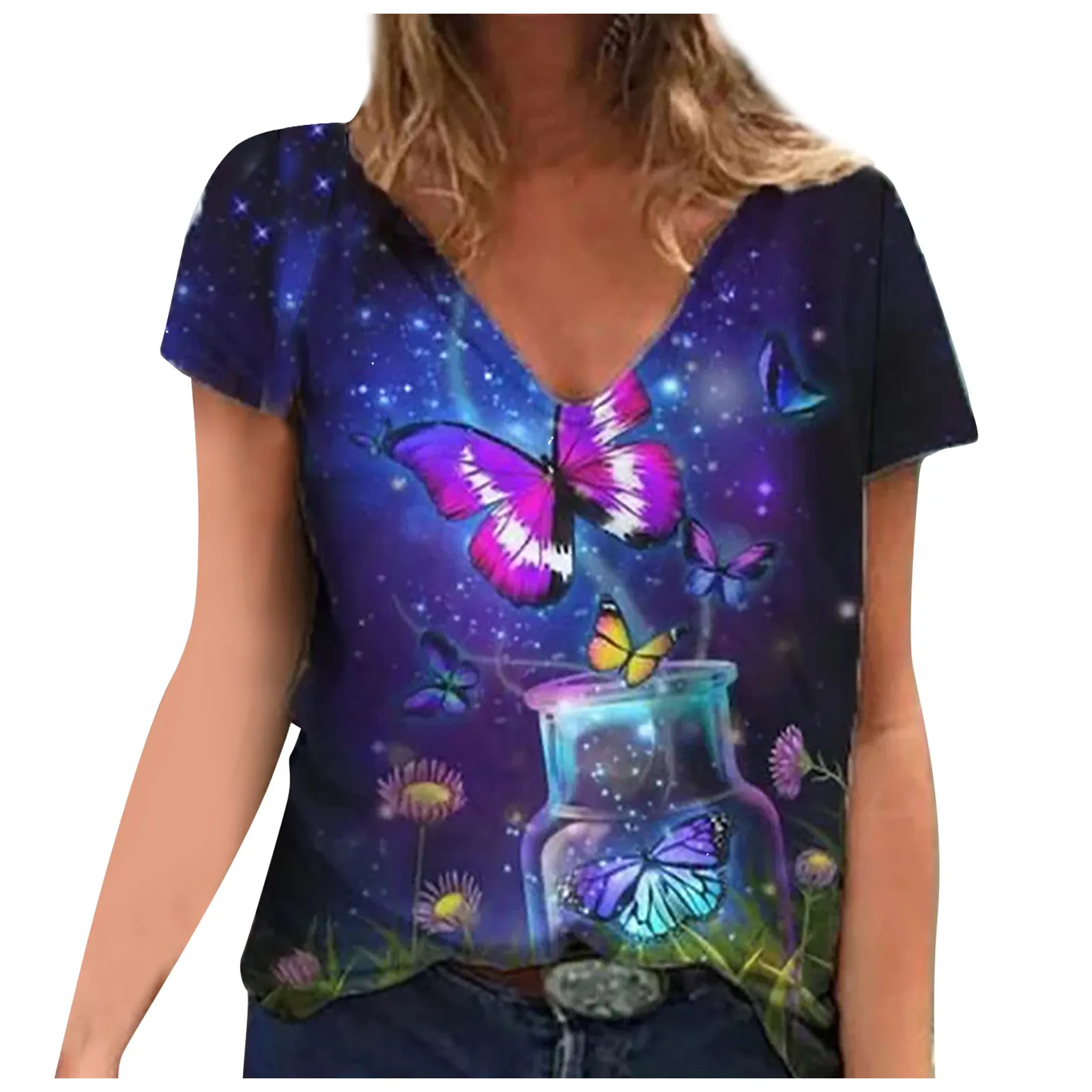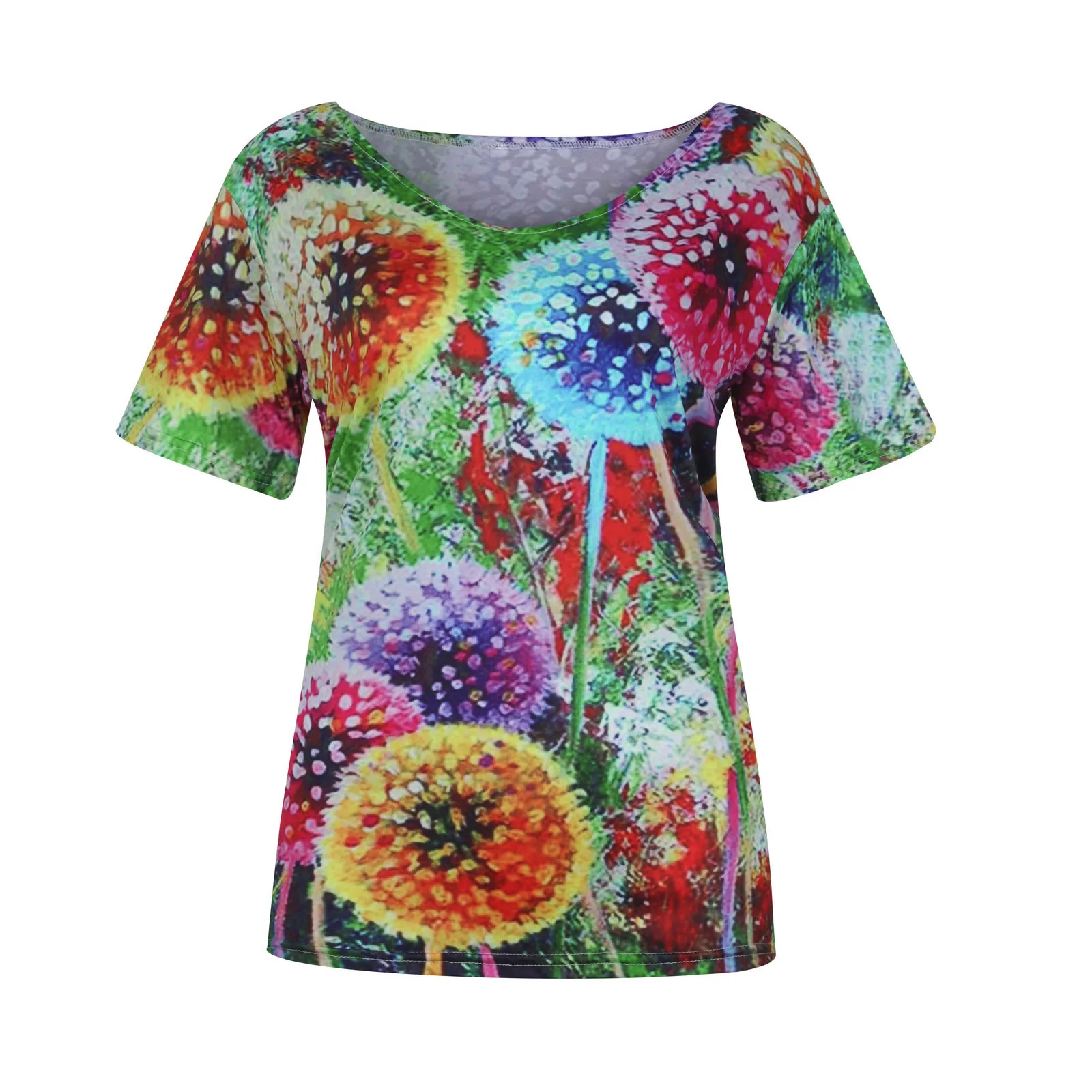 Новинка, женские летние топы, новинка, женская футболка с коротким рукавом и 3D принтом, свободные топы с V-образным вырезом, футболка, повседневная женская футболка