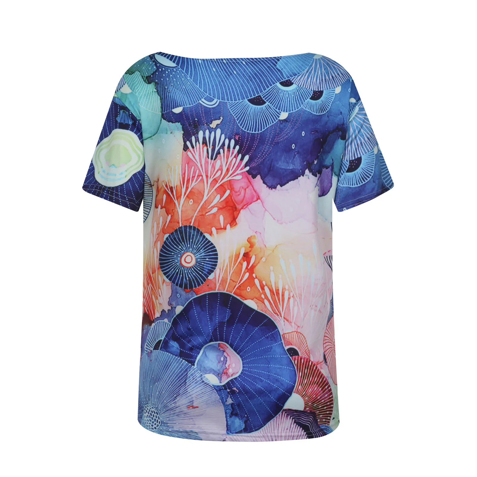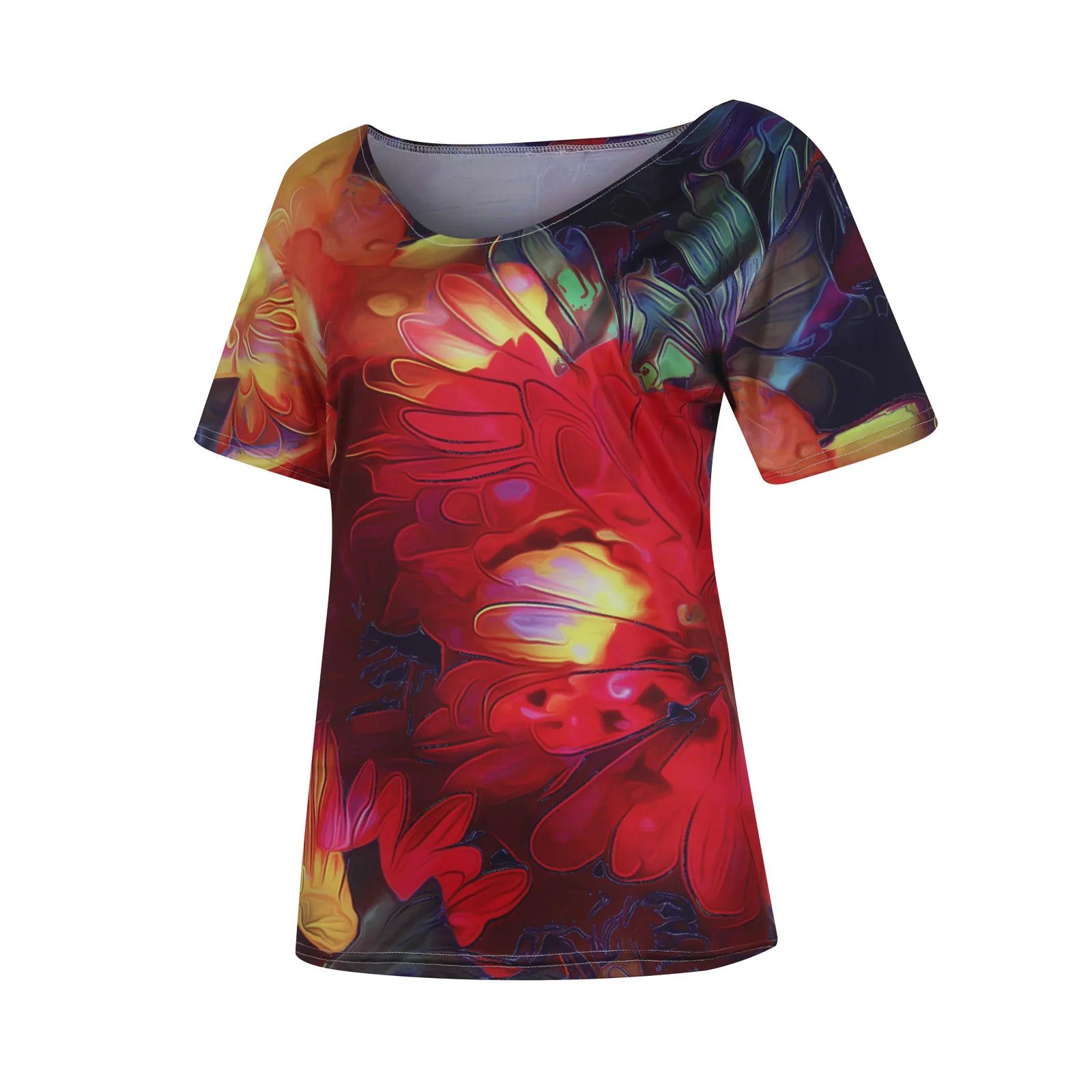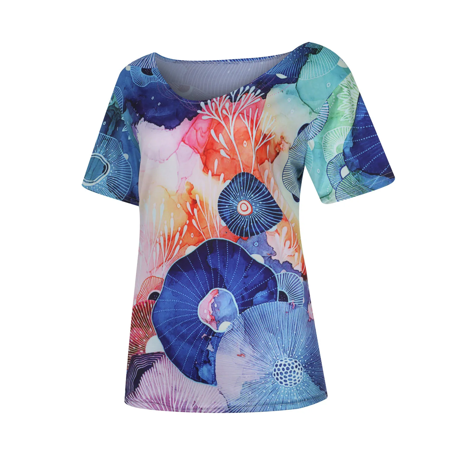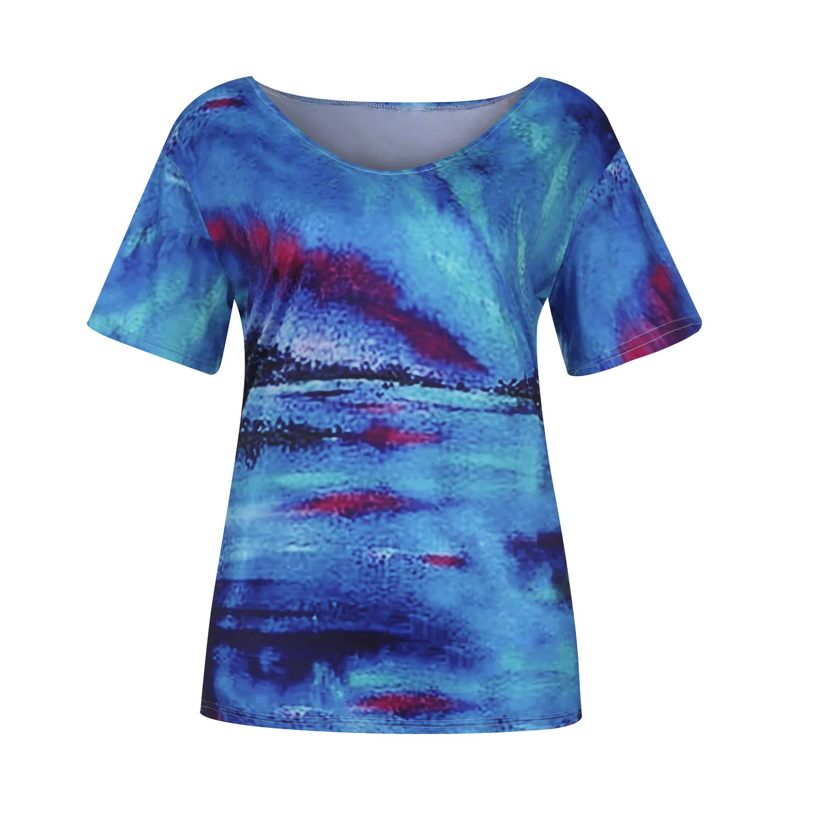 Новинка, женские летние топы, новинка, женская футболка с коротким рукавом и 3D принтом, свободные топы с V-образным вырезом, футболка, повседневная женская футболка