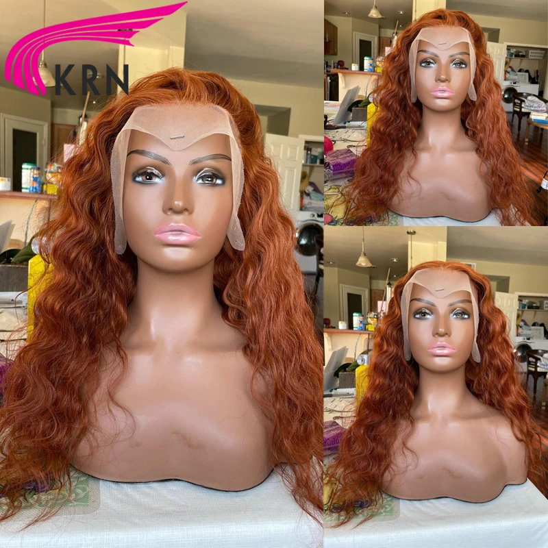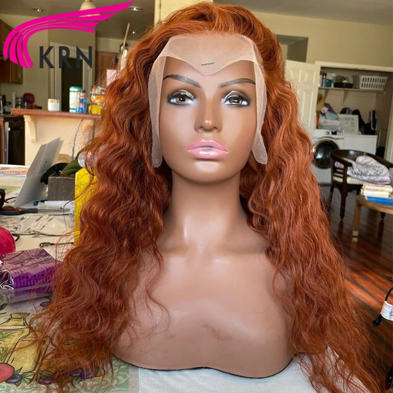 Оранжевые Имбирные глубокие волнистые парики на шнурке 180% красные оранжевые Омбре цвета бразильские человеческие волосы Remy парики для женщин предварительно выщипанные