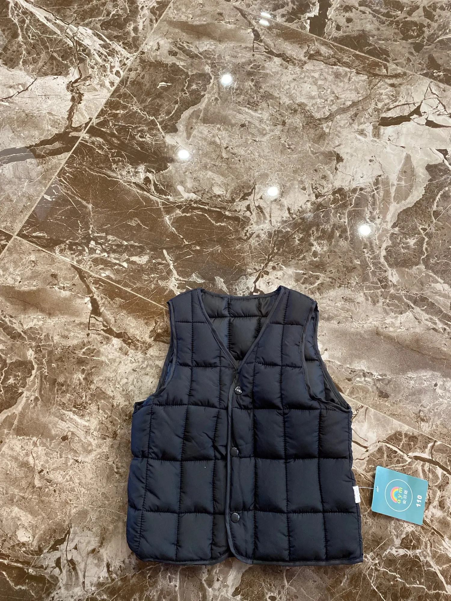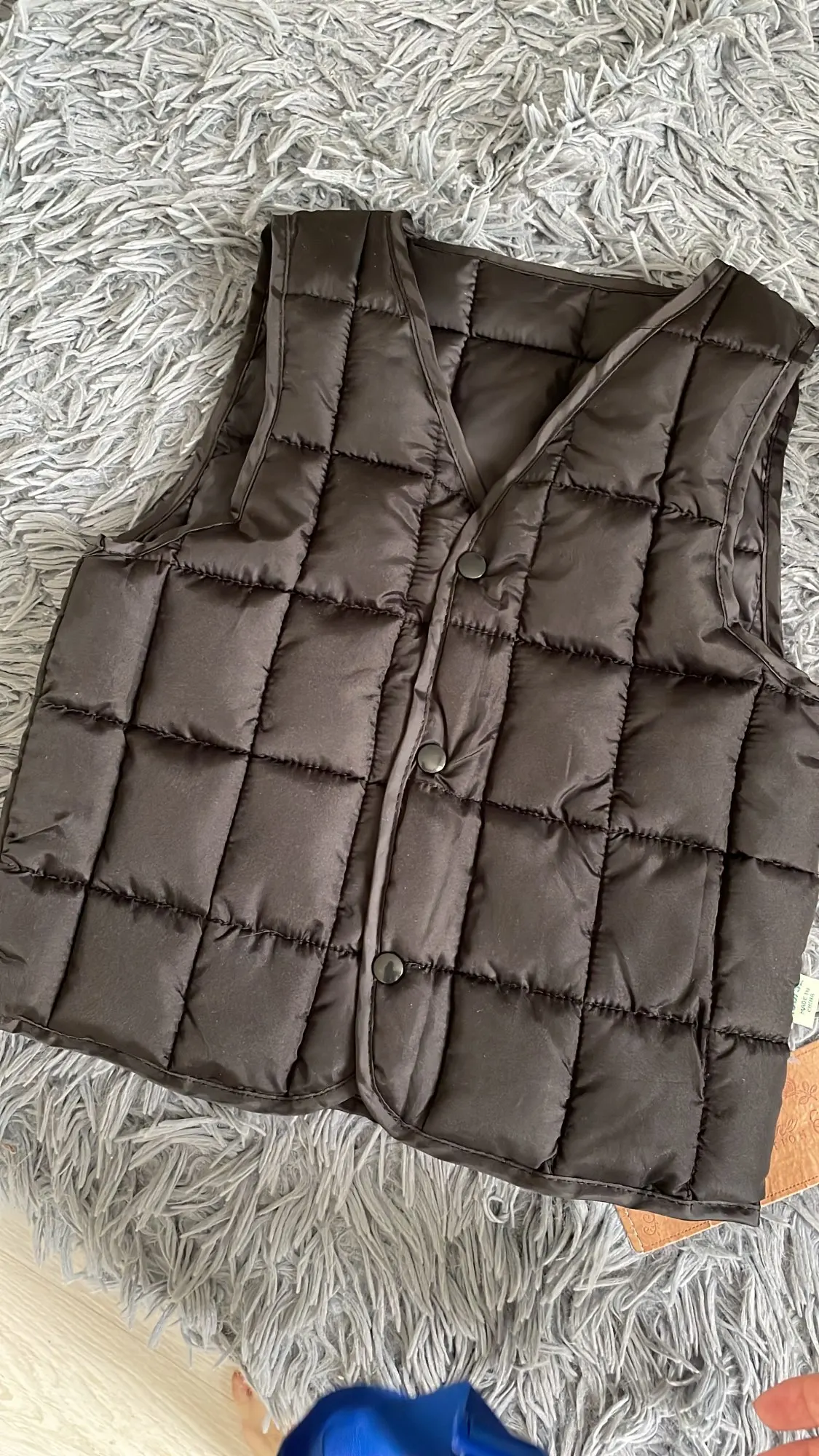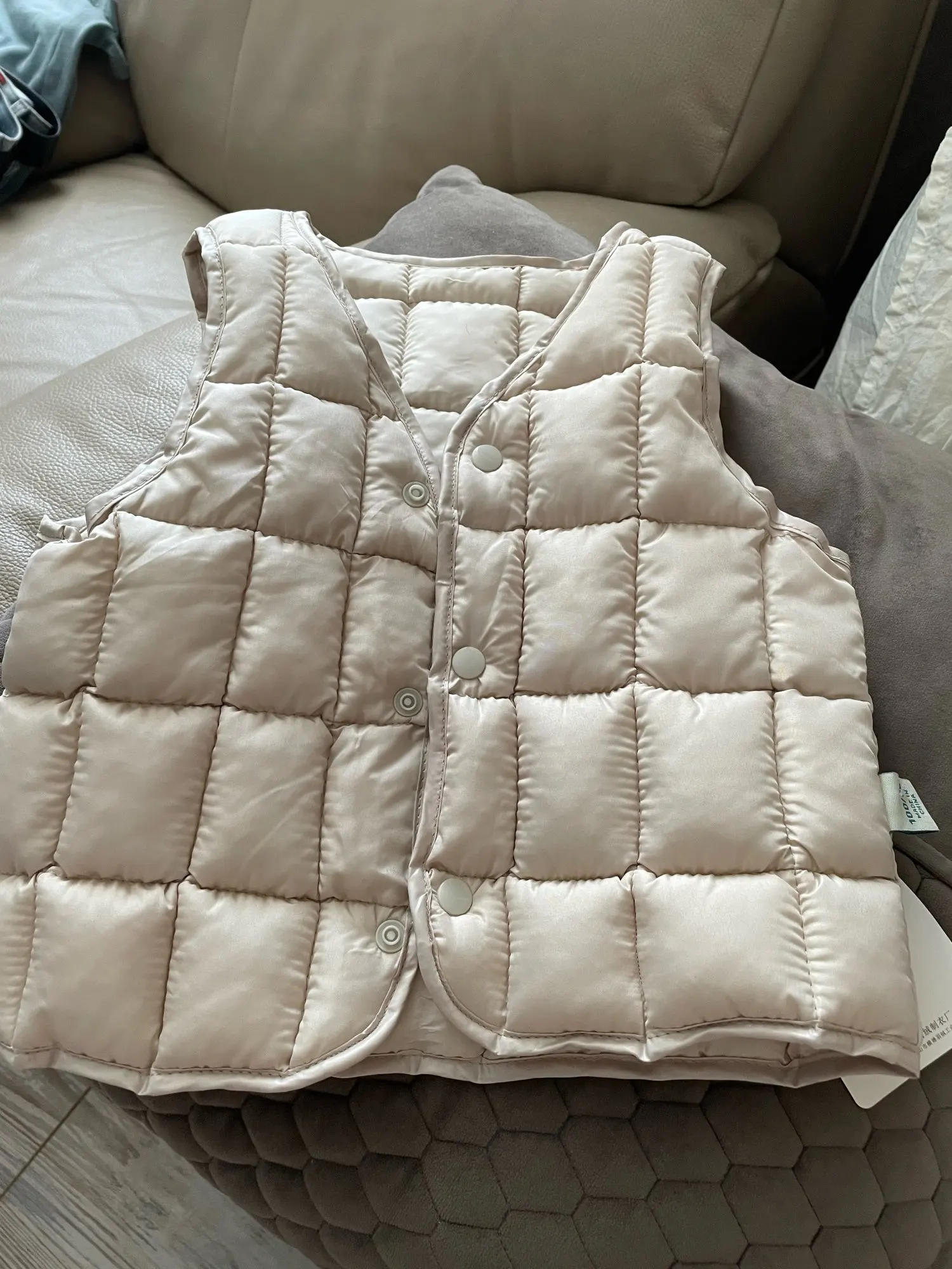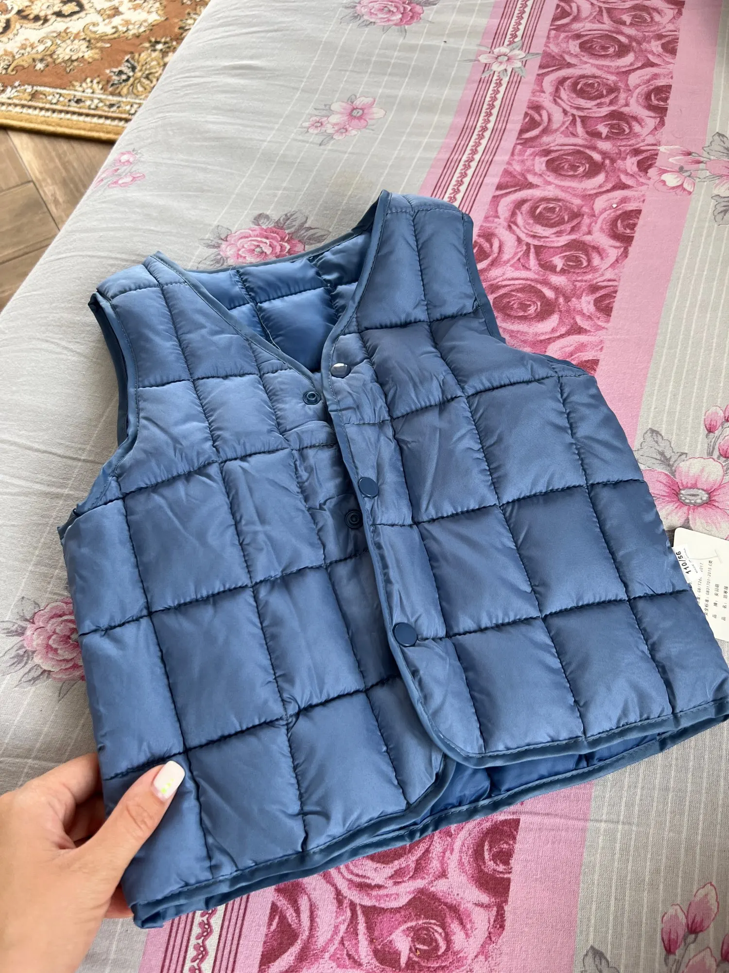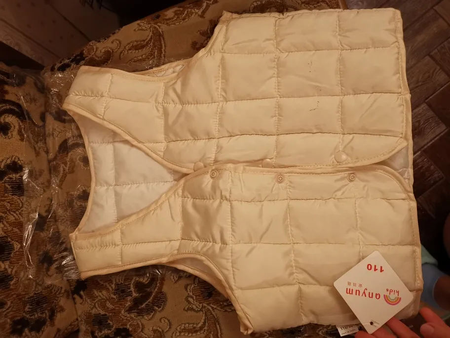 Жилет очень хороший. Хорошо обработанные швы. Стоит своих денег. Только пластиковые кнопки хрупкие. Ребенок может сломать. Будьте внимательны.
