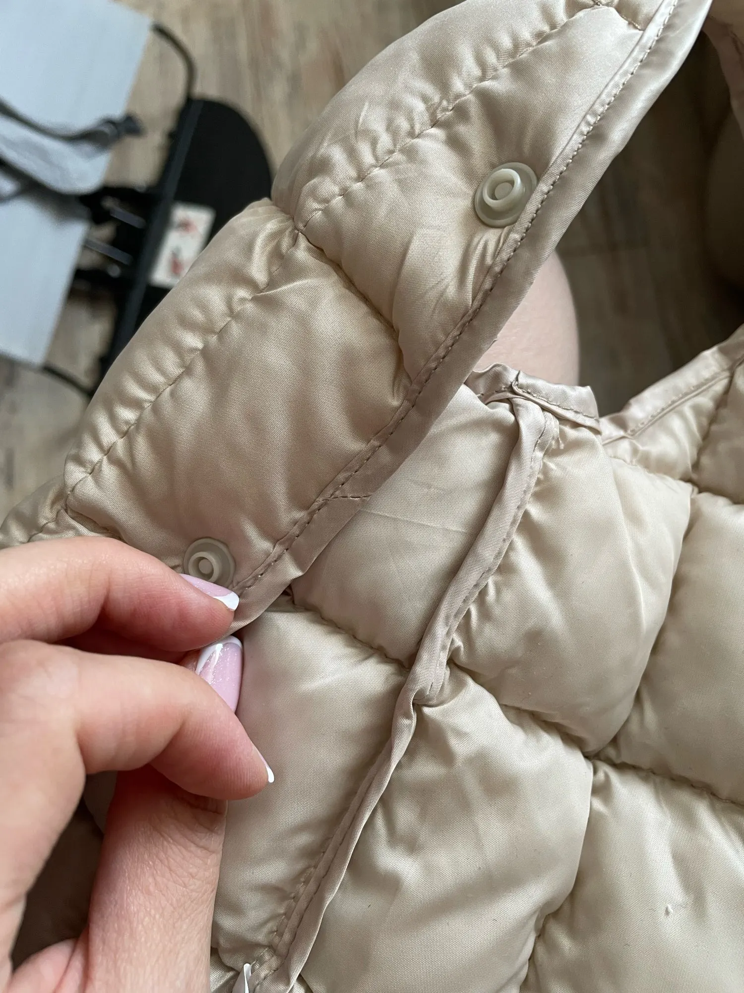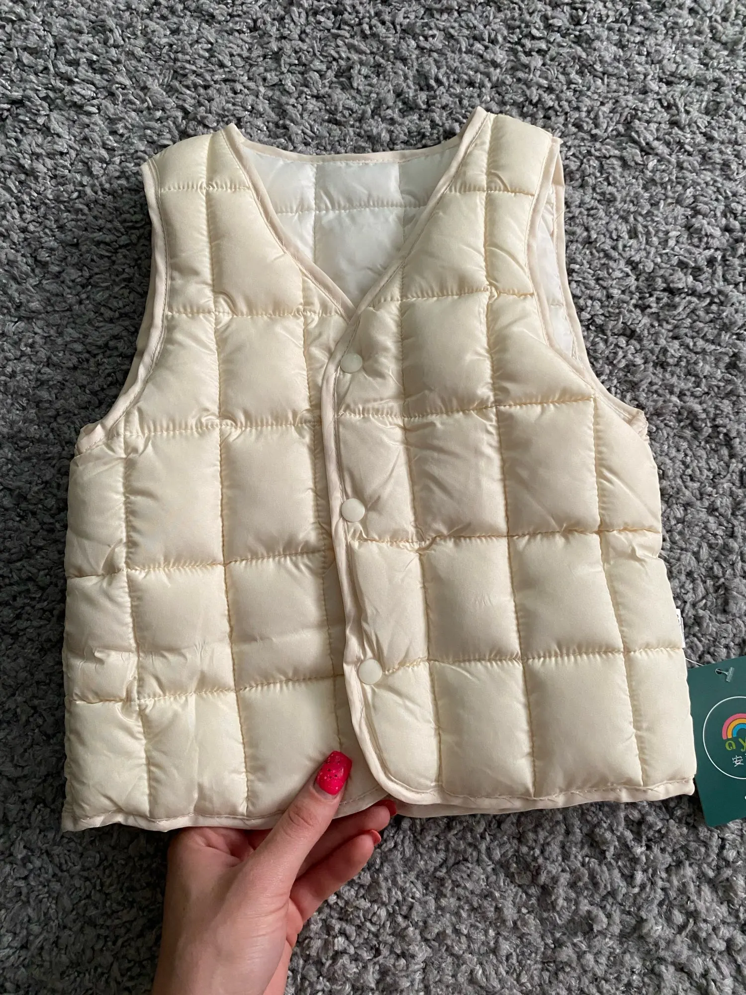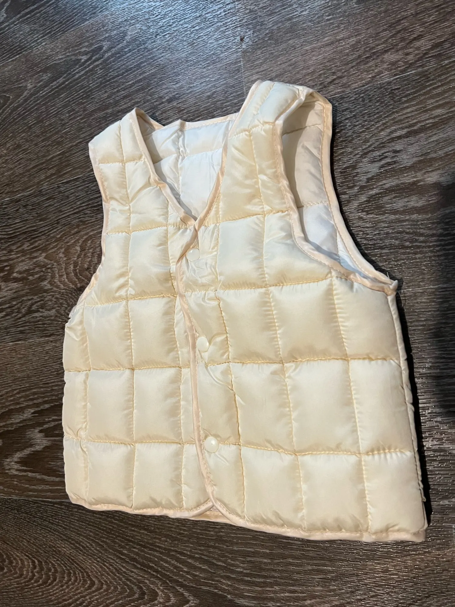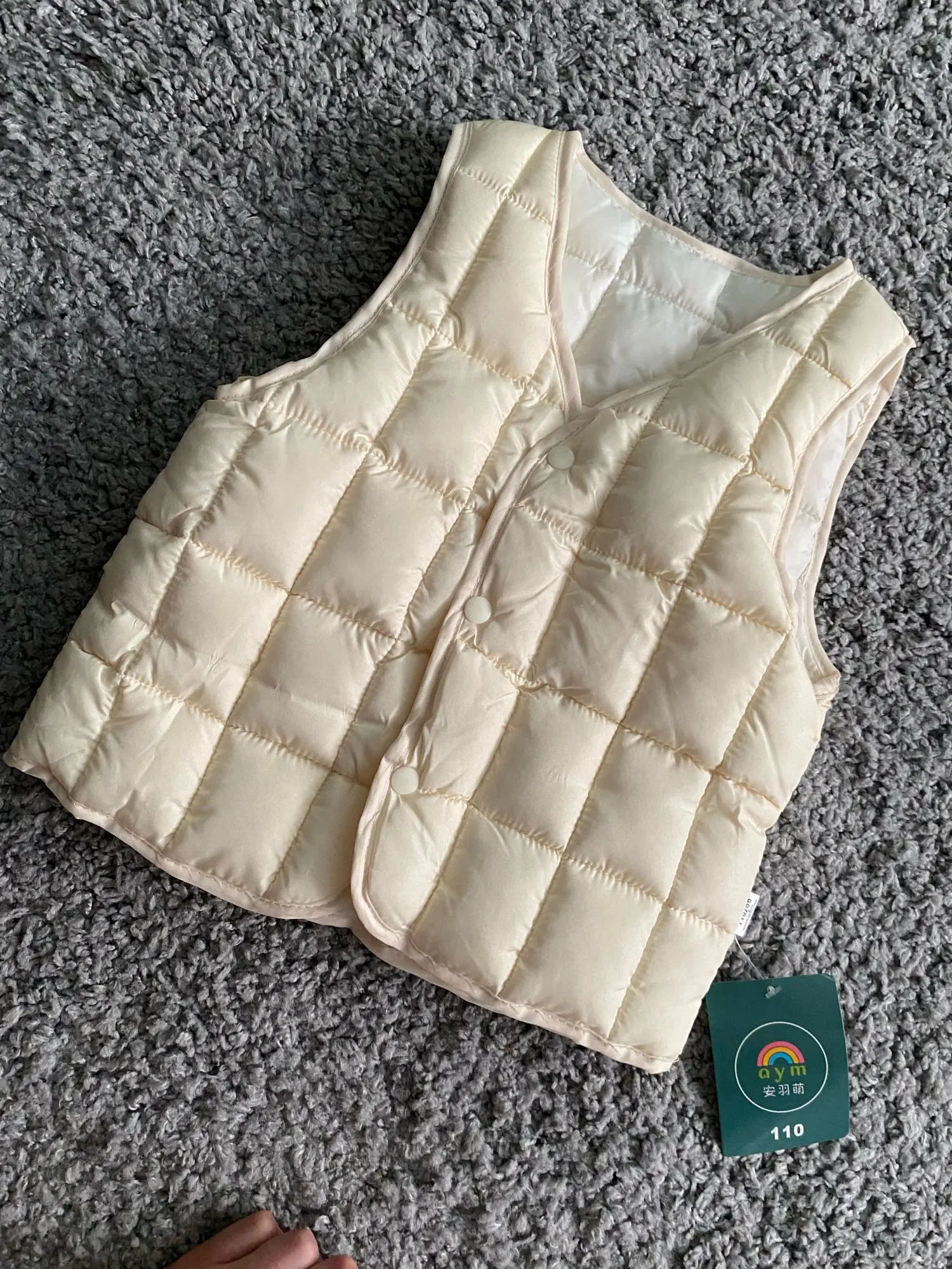 Жилет очень хороший. Хорошо обработанные швы. Стоит своих денег. Только пластиковые кнопки хрупкие. Ребенок может сломать. Будьте внимательны.