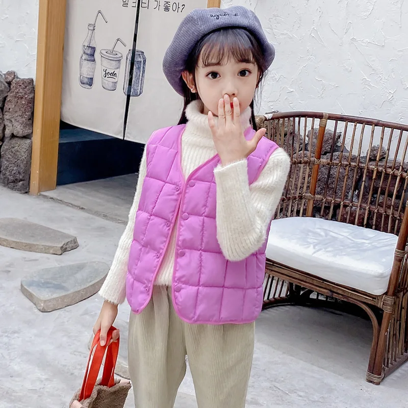 Осень-зима 2021, детские жилеты, пальто, теплые безрукавки для мальчиков и девочек, однотонная детская зимняя одежда унисекс