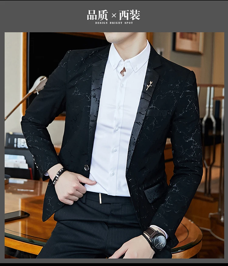 Роскошный пиджак для банкета вечерние, вечернее платье, модная жаккардовая Повседневная Деловая куртка, приталенная Мужская Свадебная куртка, Мужская одежда