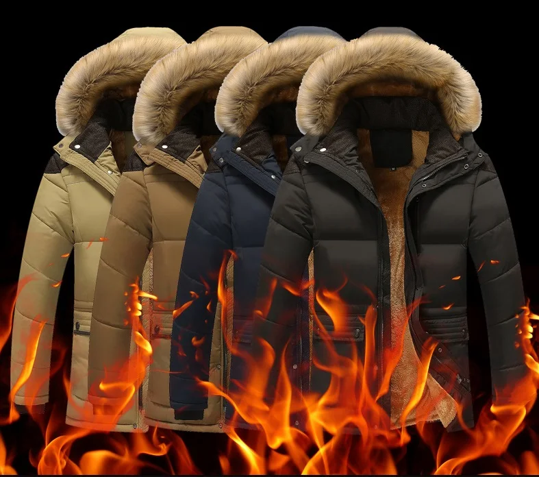 Мужская парка с меховым воротником, зимняя теплая Толстая хлопковая...