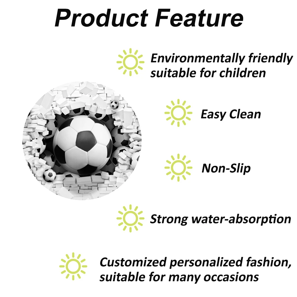 Название: круглый ковер для гостиной с 3D принтом, противоскользящий футбольный ковер, детский коврик для спальни, компьютерный коврик для стула, футбольный коврик, домашнее украшениеМатериал: полиэстерПрименение: спальня, гостиная, прачечная, вход, квартира, детская комната, детская комната.* На самом деле, вы можете использовать его везде, где вы думаете, хорошо.Характеристики: красивый цветной дизайн, мягкий и удобный, не выцветает, не скользит.