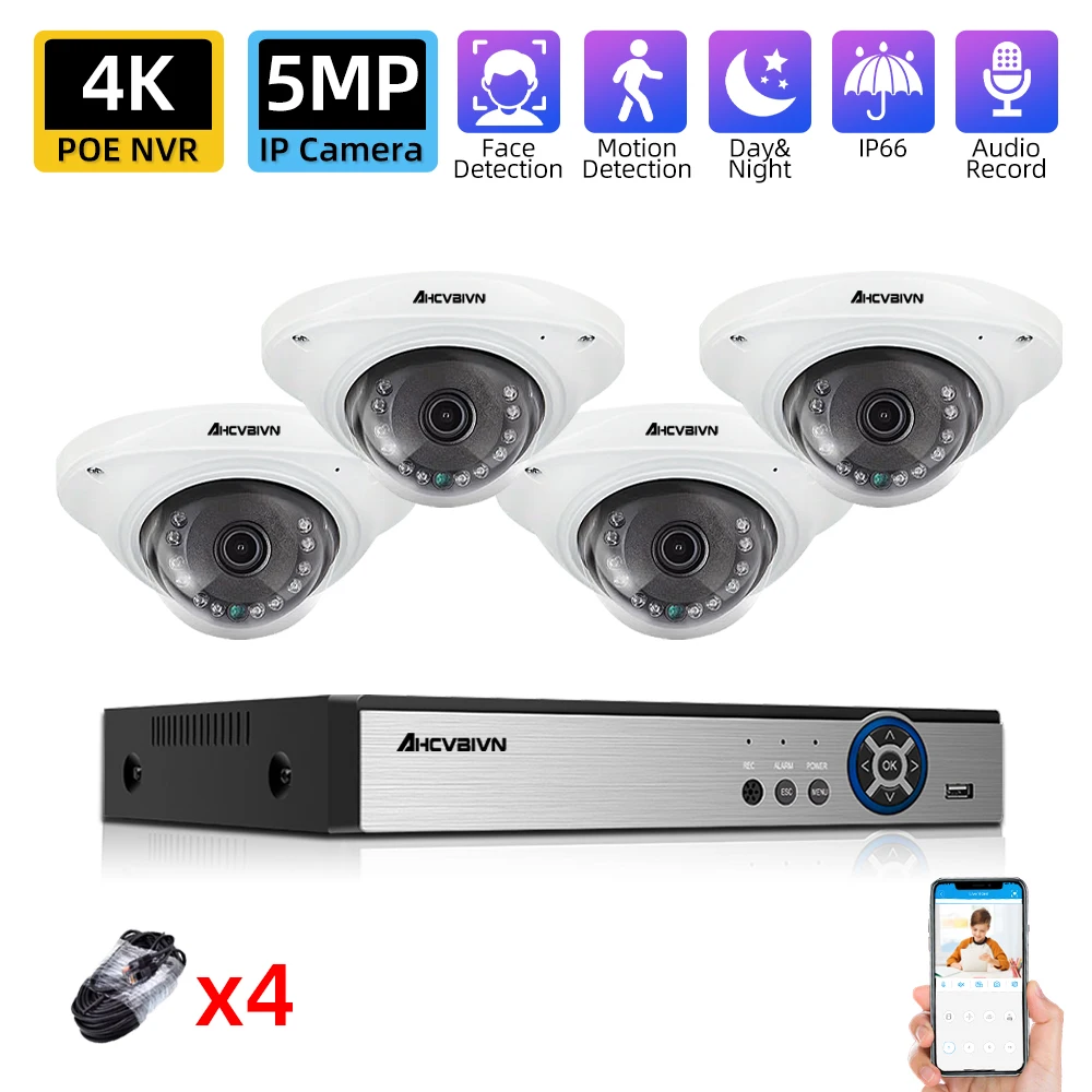 Система видеонаблюдения POE 4k 4 канала 5 МП, комплект видеорегистратора 5 МП, ИК IP-камера с записью звука, уличный Водонепроницаемый комплект видеонаблюдения P2P