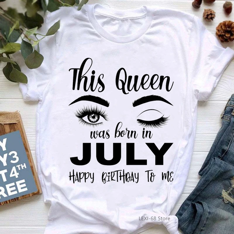 Футболка женская с графическим принтом Эта королева родилась в июле