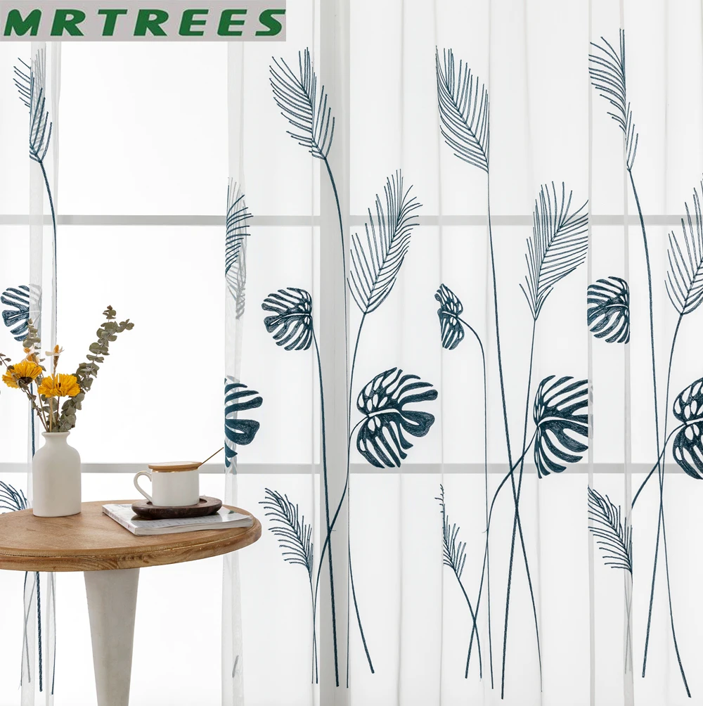 Полупрозрачные шторы MRTREES, вуаль с цветочной вышивкой для гостин...