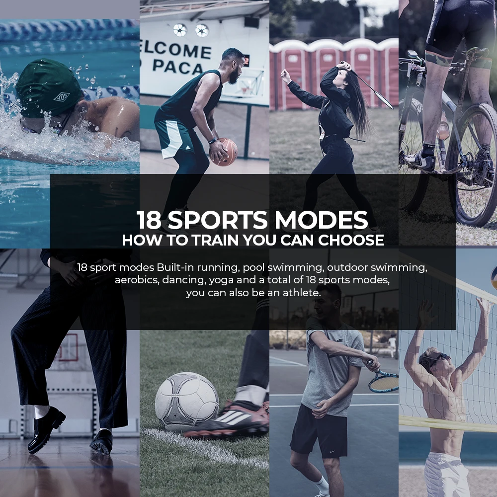 18 спортивных режимов встроенный бег, плавательный бассейн, открытый плавание, аэробика, танцы, йога и в общей сложности 18 спортивных режимов, вы также можете быть атлетом.