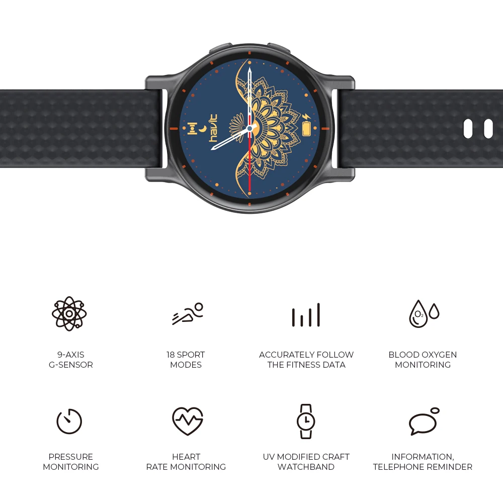 HAVIT профессиональные плавательные Смарт-часы 5ATM водонепроницаемые 18 спортивных режимов Интеллектуальное обнаружение красный-led кровяное кислородное напоминание пульса