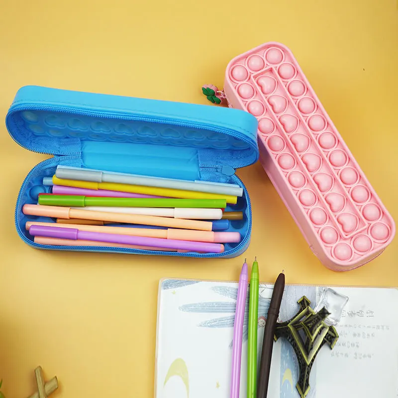 Силиконовый кошелек пуш-поп в форме сердца с пузырьками, простой мягкий стационарный чехол, сенсорный Чехол-карандаш, игрушка