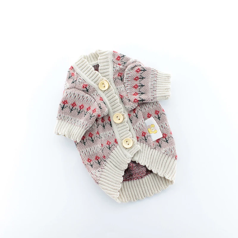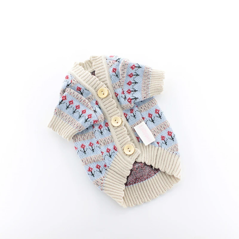Осенняя одежда для собак, свитер с маленькими цветами для собак, ка...