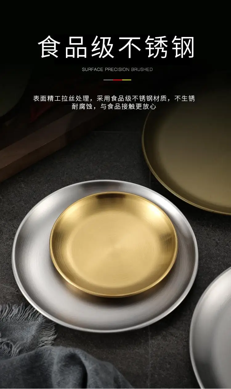 Золотистый десерт из нержавеющей стали, поднос для закусок в кафе, круглые неглубокие обеденные тарелки, европейские столовые приборы