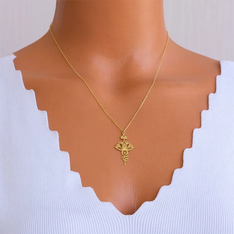 Изысканное ожерелье с подвеской в виде цветка лотоса, модное ожерелье в стиле хиппи, Йога, символы из розового золота, ювелирные изделия, подарки на годовщину, День матери