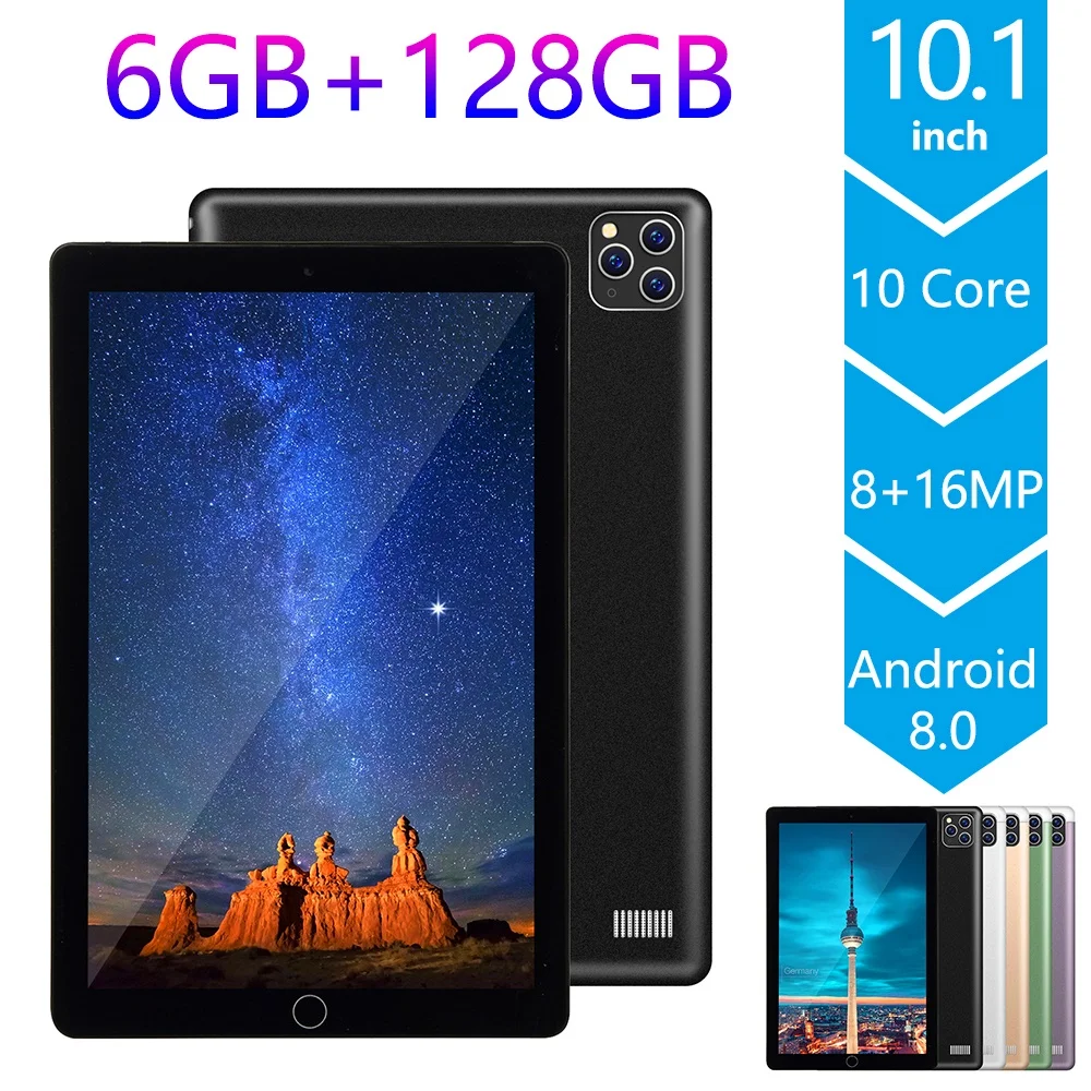 Планшет с 4G SIM, Wi-Fi, 10,1 дюймов, Android 8,0, GPS, Bluetooth, 10 ядер, 1280 × 800, IPS HD экран, 6 ГБ ОЗУ, 128 Гб ПЗУ, Детские умные планшеты, ПК
