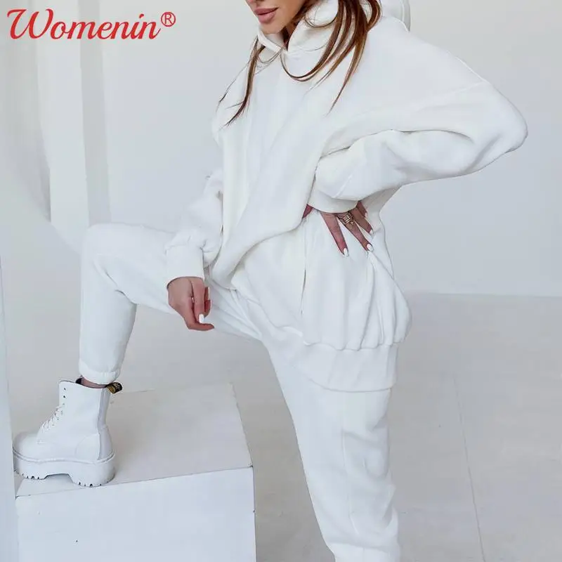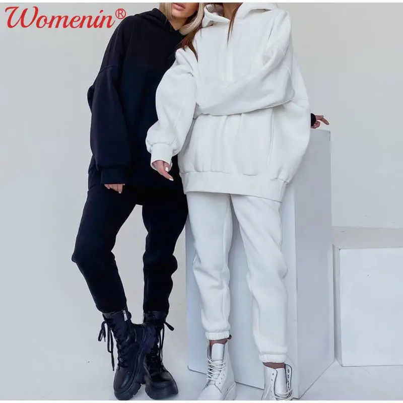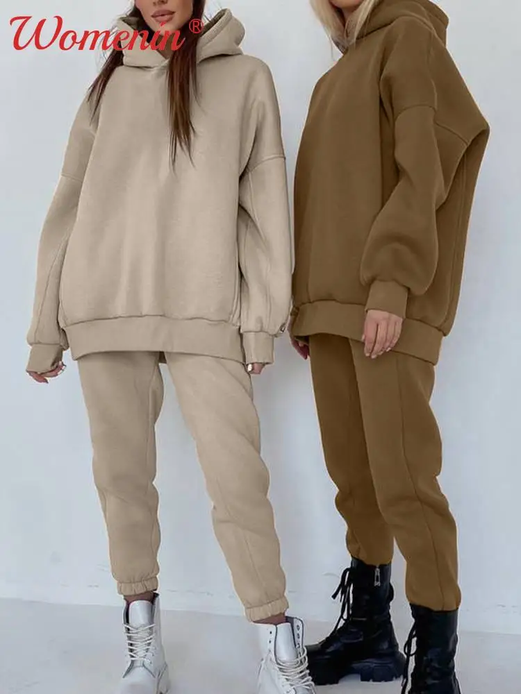 Флисовый женский спортивный костюм с капюшоном, брюки-джоггеры, Женский комплект из двух предметов, большие размеры, сезон осень-зима 2022, повседневные женские спортивные костюмы