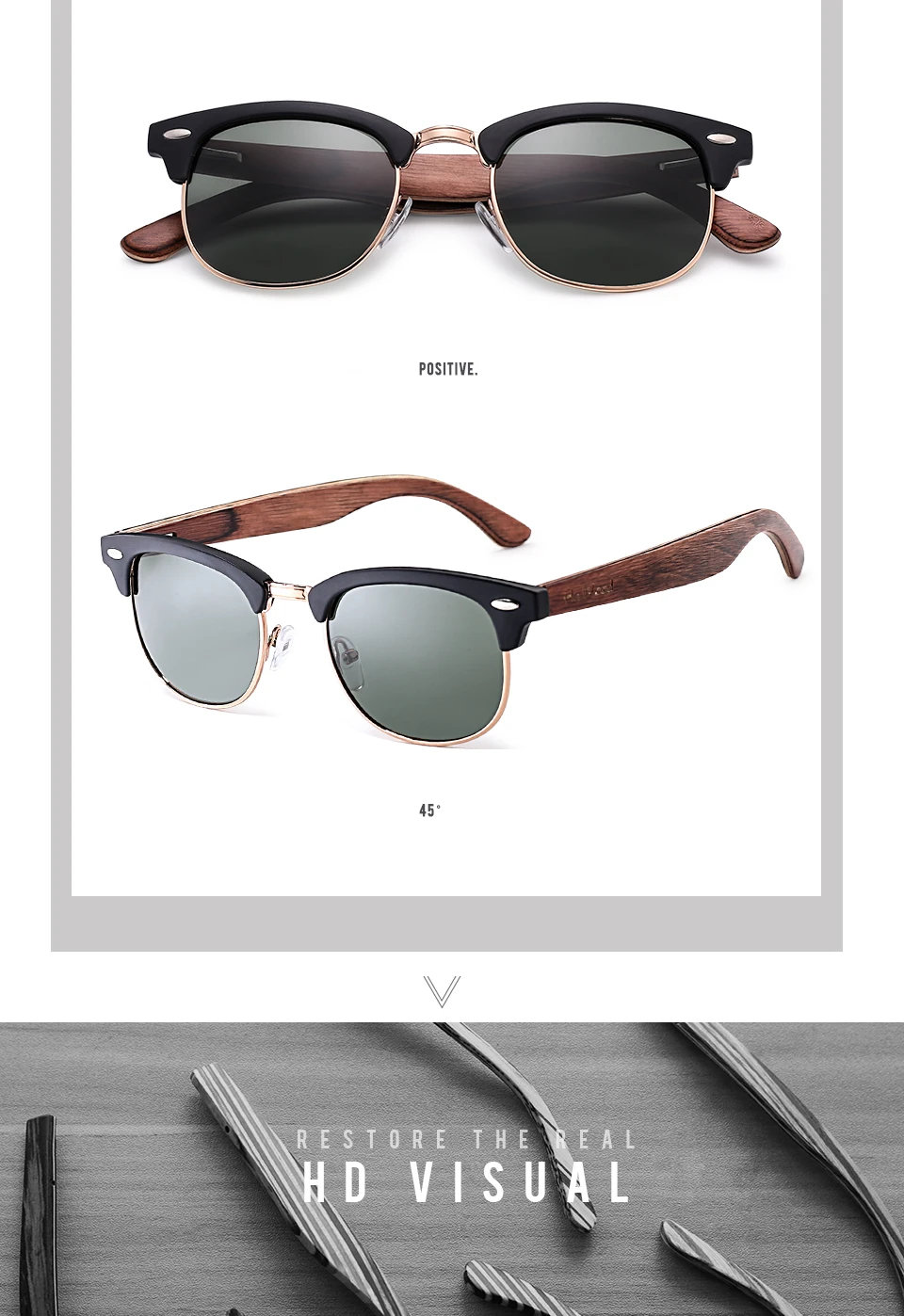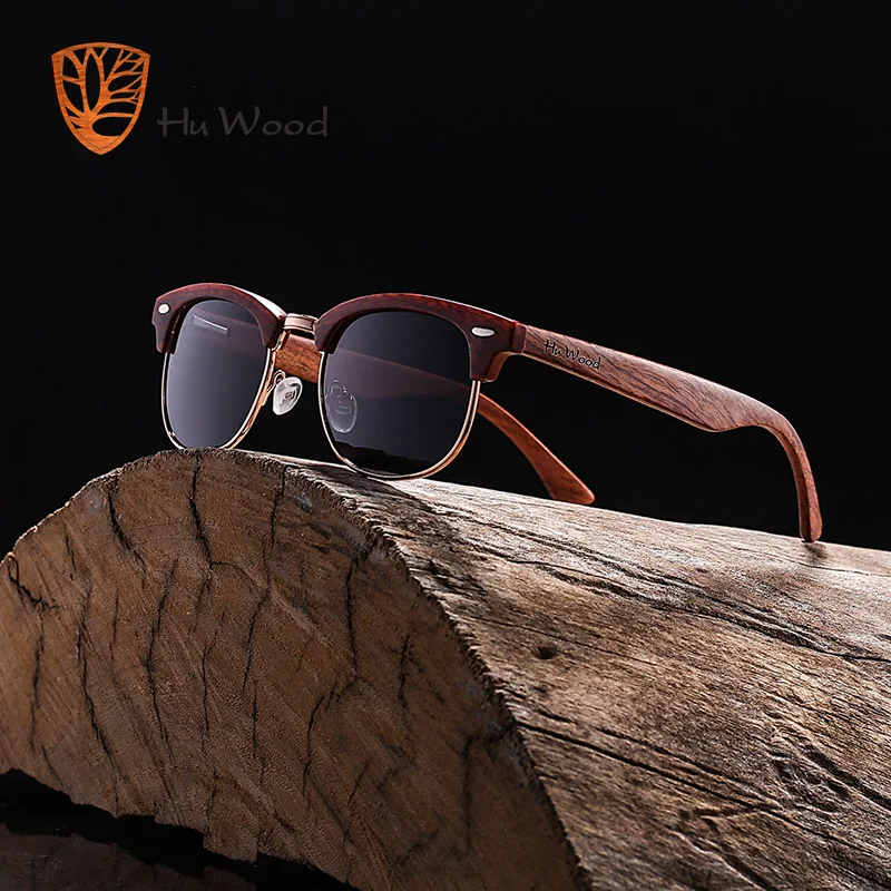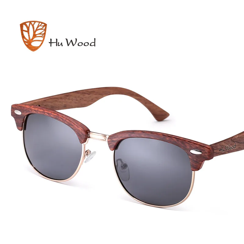 Солнцезащитные очки HU WOOD для женщин, поляризационные брендовые солнечные очки унисекс в полоску, Полуободковые, в стиле ретро, GR8005
