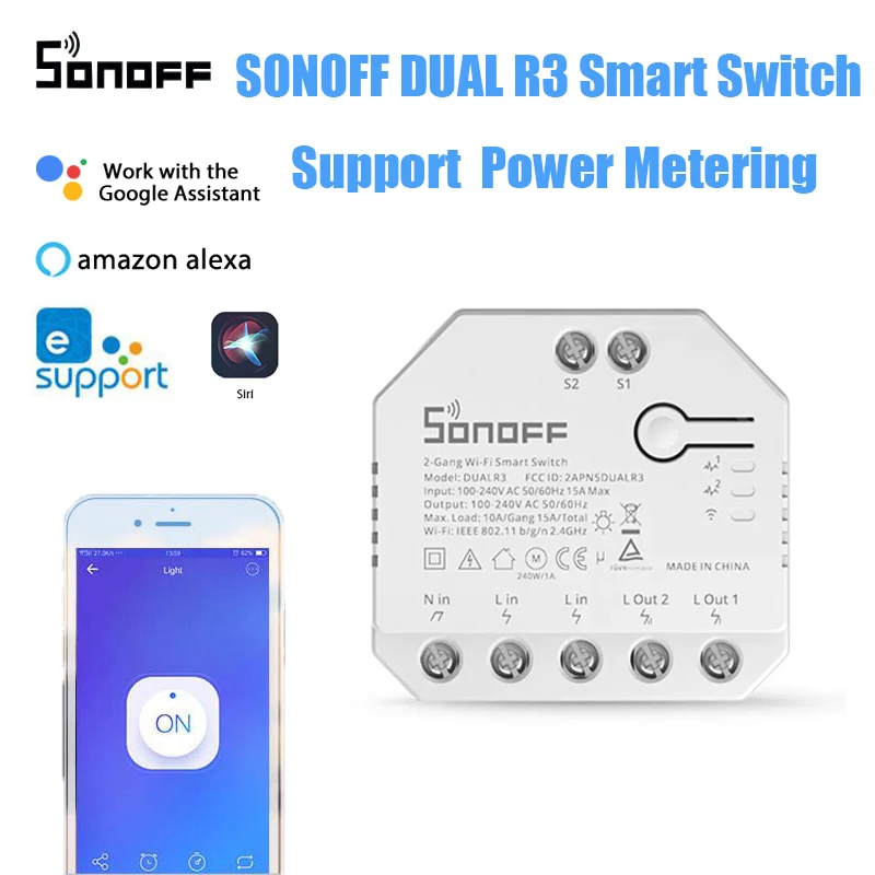 Двухканальный релейный модуль SONOFF DUAL R3, умный мини-переключатель сделай сам с контролем замера питания через eWeLink Alexa Google Smart Home