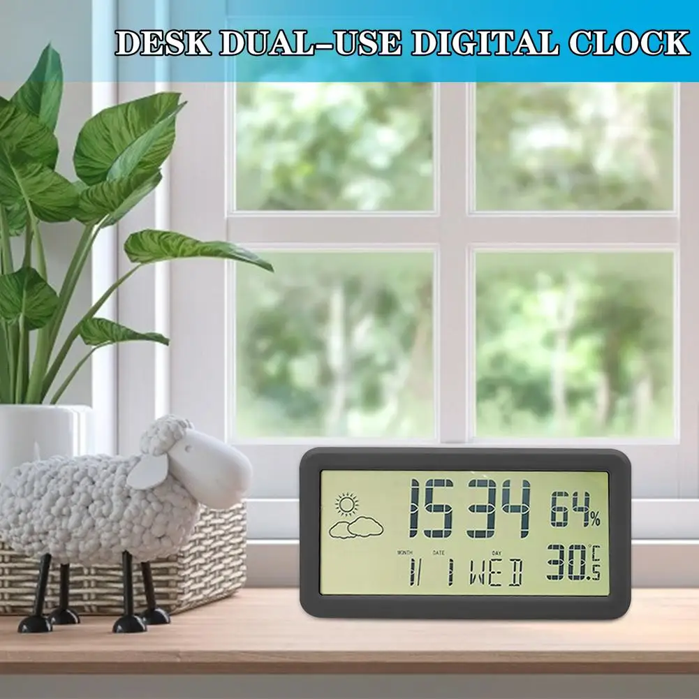 Цифровой будильник с большим ЖК-дисплеем, Настольные Цифровые часы ...