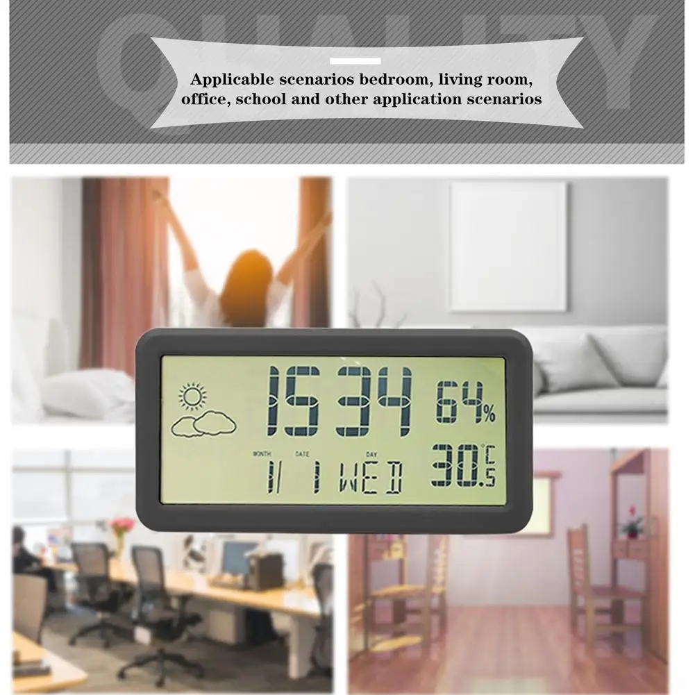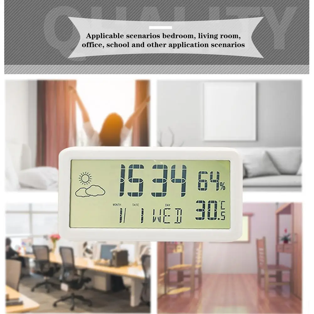 Точки пули:1. Обнаружение температуры + влажности: цифровые часы оснащены датчиком температуры и влажности, режимом °C/°F, который может контролировать температуру в помещении и влажность в режиме реального времени, А также уникальный значок погоды.2. Отображение месяца/даты + недели: Этот будильник может отображать время, месяц/день и неделю одновременно. Цифровой дисплей большой и легко проверить. Функция календаря идеально подходит для дома и офиса.3. Питание от аккумулятора и портативность: маленькие настольные часы питаются от кнопки CR2032 (в комплекте), и они могут работать без подключения зарядного кабеля. Удобно носить с собой, подходит для путешествий и использования на открытом воздухе.4. Настольные Цифровые часы: ЖК-часы имеют подвесное отверстие и 2 Выдвижных кронштейна на спине. Его можно использовать на рабочем столе в качестве настольных часов или повесить на стену в качестве настенных часов.