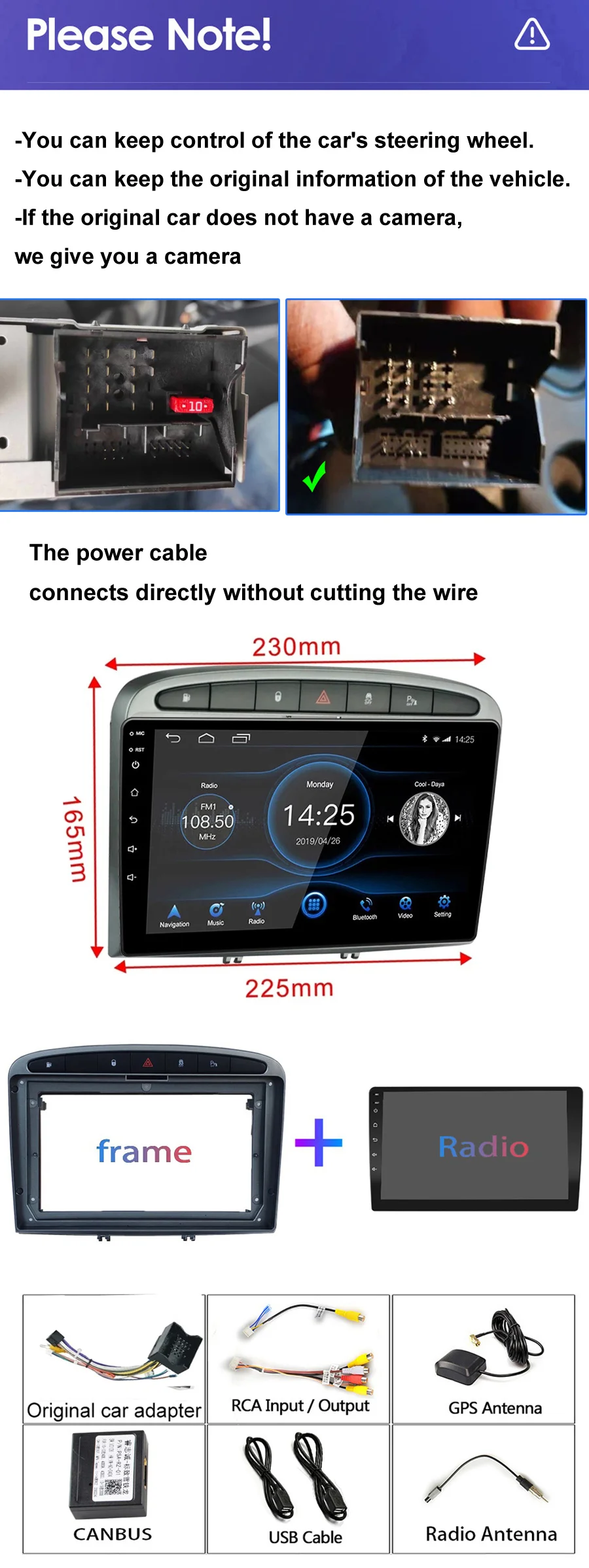 Автомобильный мультимедийный плеер на Android 10, 6 + 128 ГГц, стерео для Peugeot RCZ 308 408 с GPS-навигацией, головное устройство Mirror Link, 4G, Wi-Fi, SWC