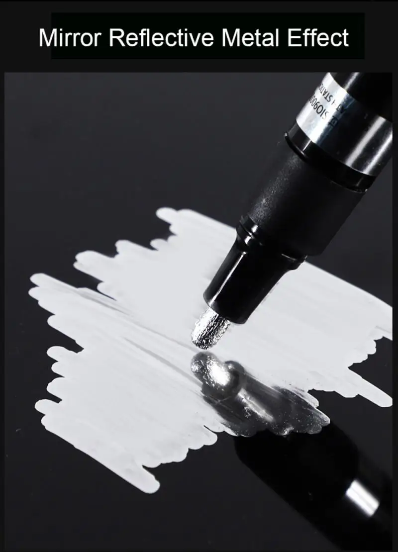 【Smooth flow】высокий блеск эффекты могут быть созданы на большинстве поверхностей, применяются к гладким поверхностям для зеркального эффекта. Разработанный с инновационным клапаном, чернила плавно протекают без остановок, протечек или кровотечения.