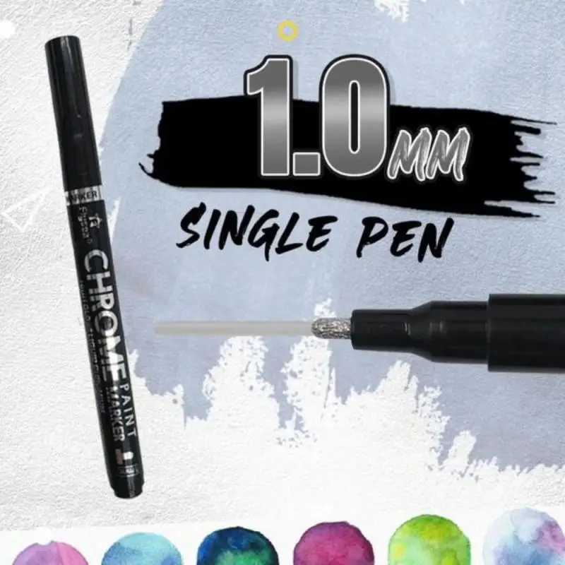 【Liquid Chrome marker】он наполнен сильно пигментированными, специальными хромированными чернилами, которые делают непревзойденную зеркальную поверхность практически на всех гладких поверхностях, таких как пластик, стекло, дерево и резина.