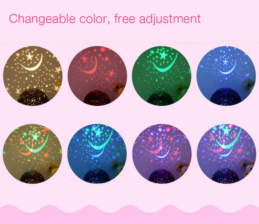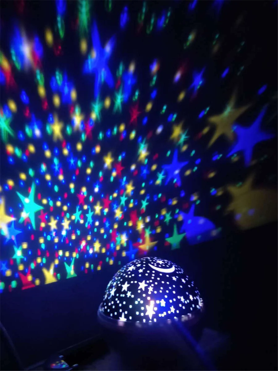 Светодиодные фонари с варианты нескольких цветов4 различных изменения цветаНе нагревается и не нагревается даже во время бега всю ночьПостоянный ночсветильник/Вращающаяся Лунная звезда проекционная лампа