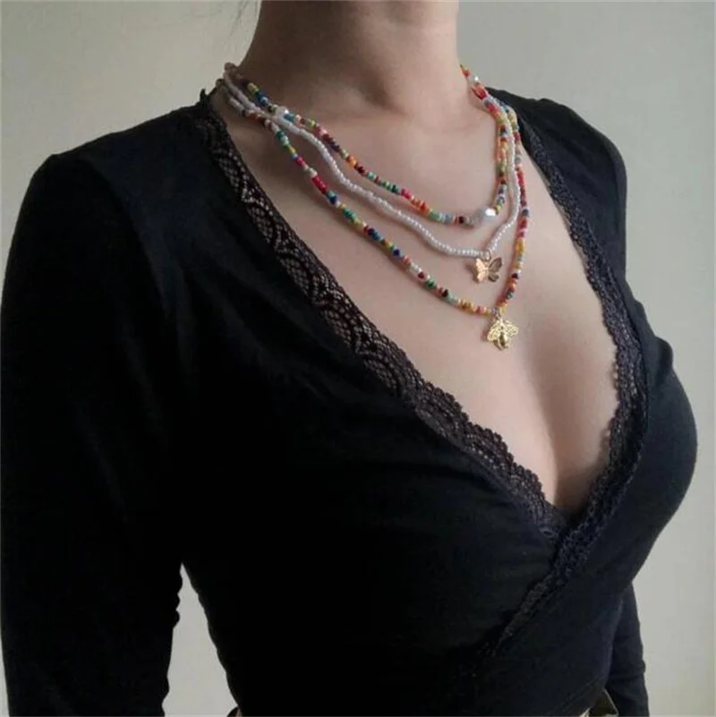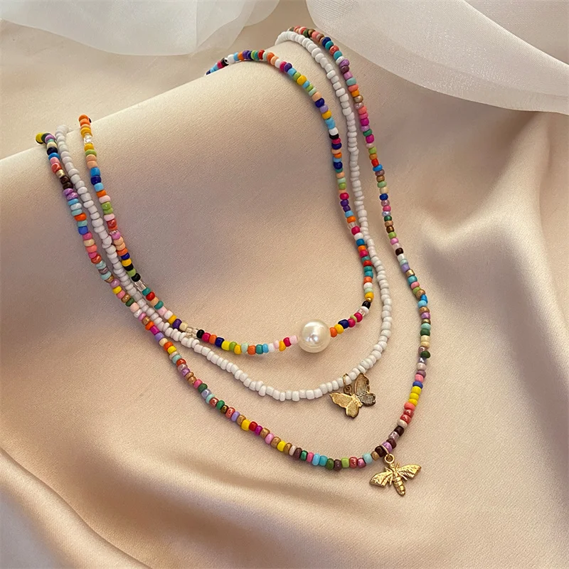 Красочное ожерелье, Подарочная цепочка с бусинами для женщин, милое...