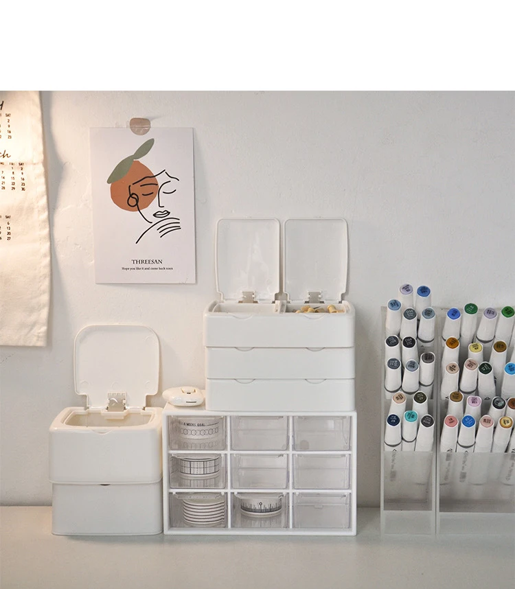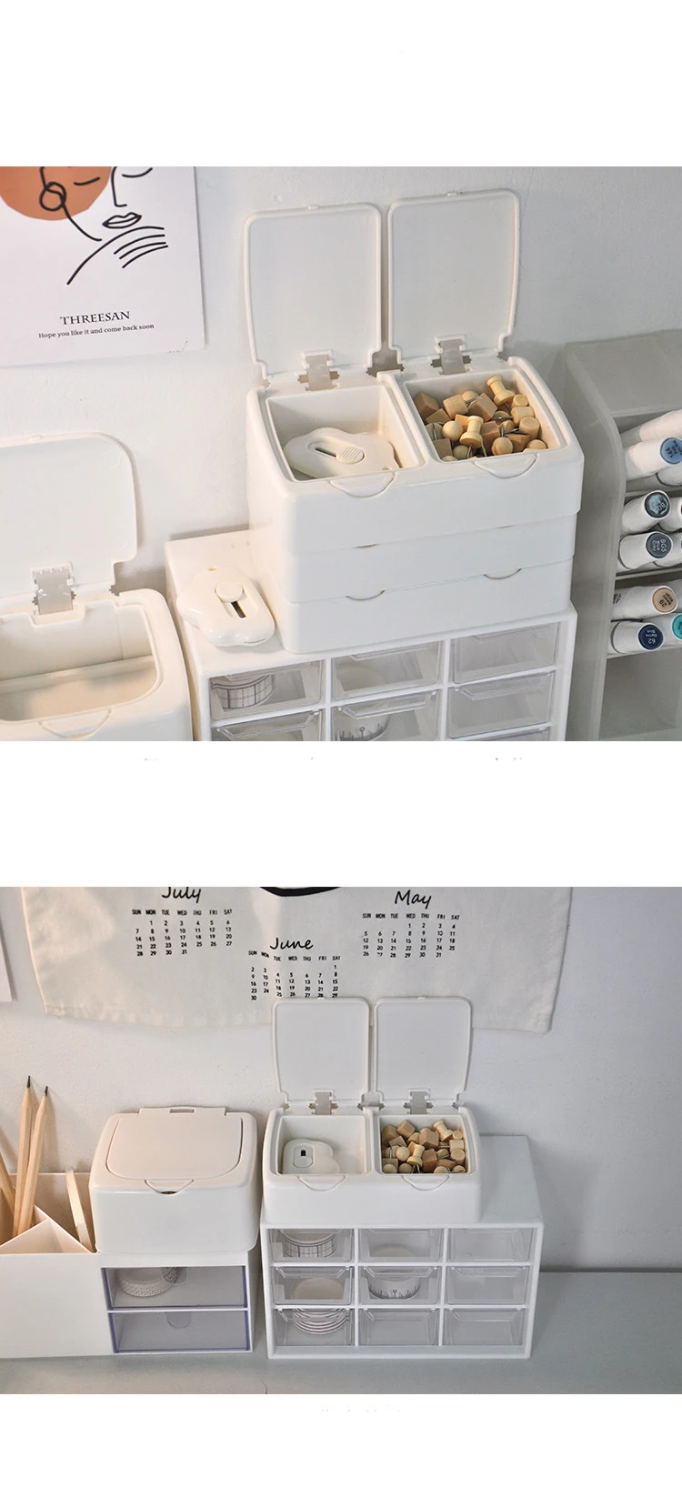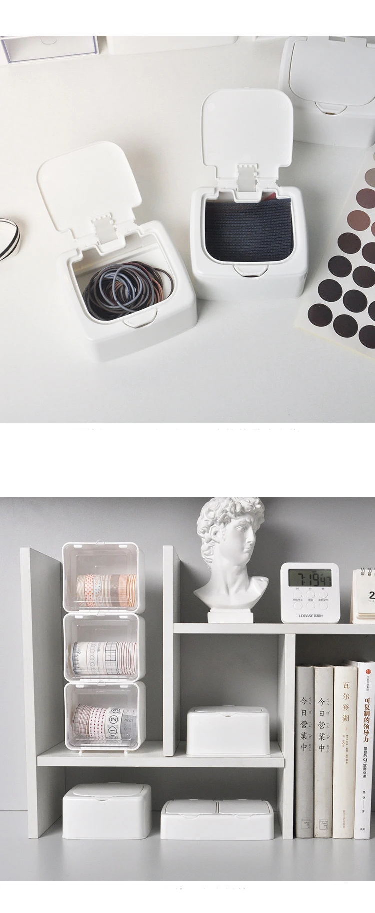 INS простой настольный мини пластиковый ящик для хранения Коробка для ватных тампонов с крышкой пыленепроницаемый оконный органайзер для хранения канцелярских принадлежностей