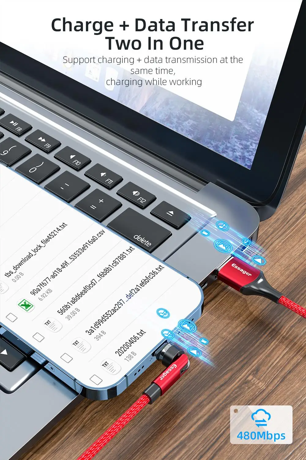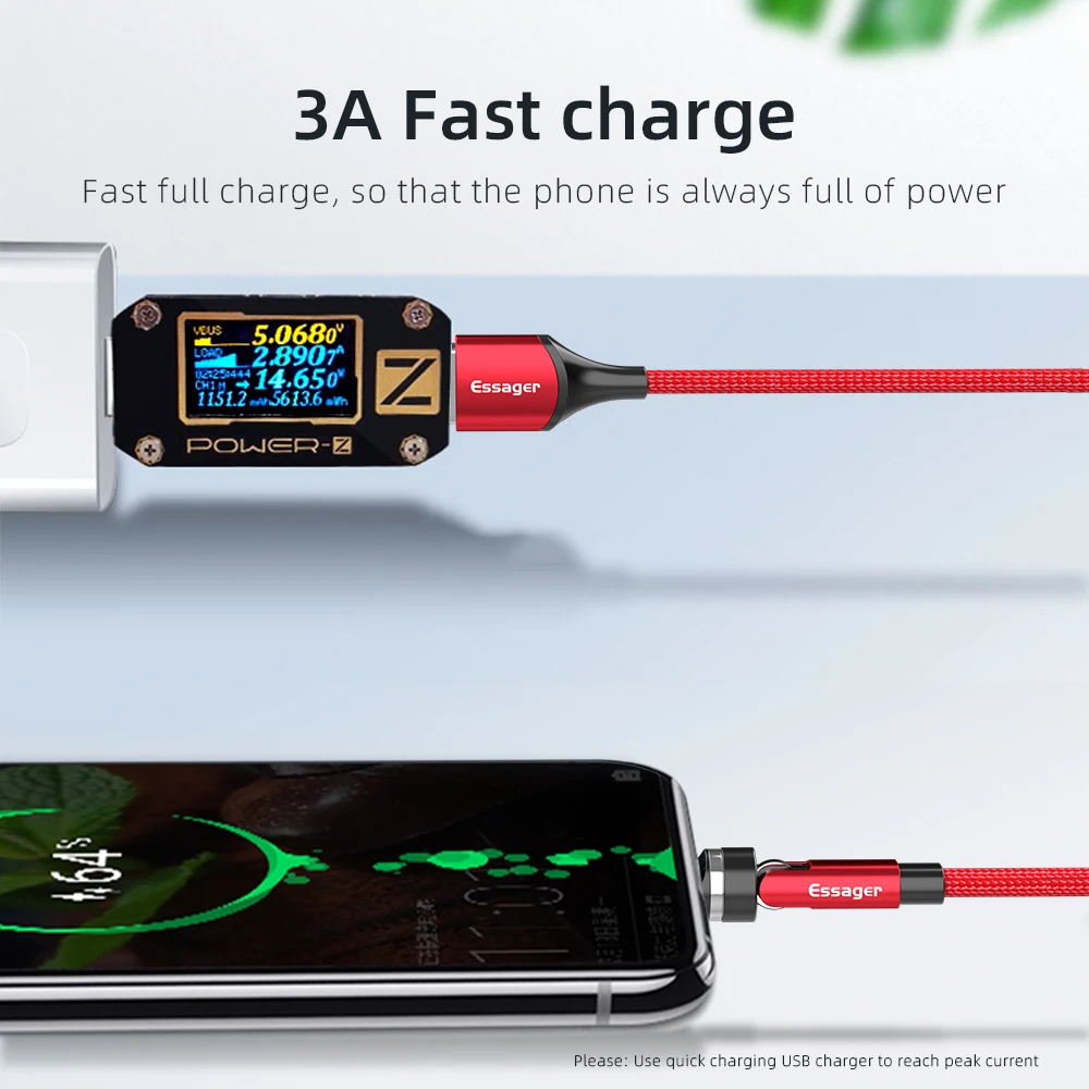 Магнитный кабель Essager 3A для быстрой зарядки, Micro USB Тип C, магнитное зарядное устройство для передачи данных для iPhone, Xiaomi мобильный телефон, вращающийся провод 540, шнур