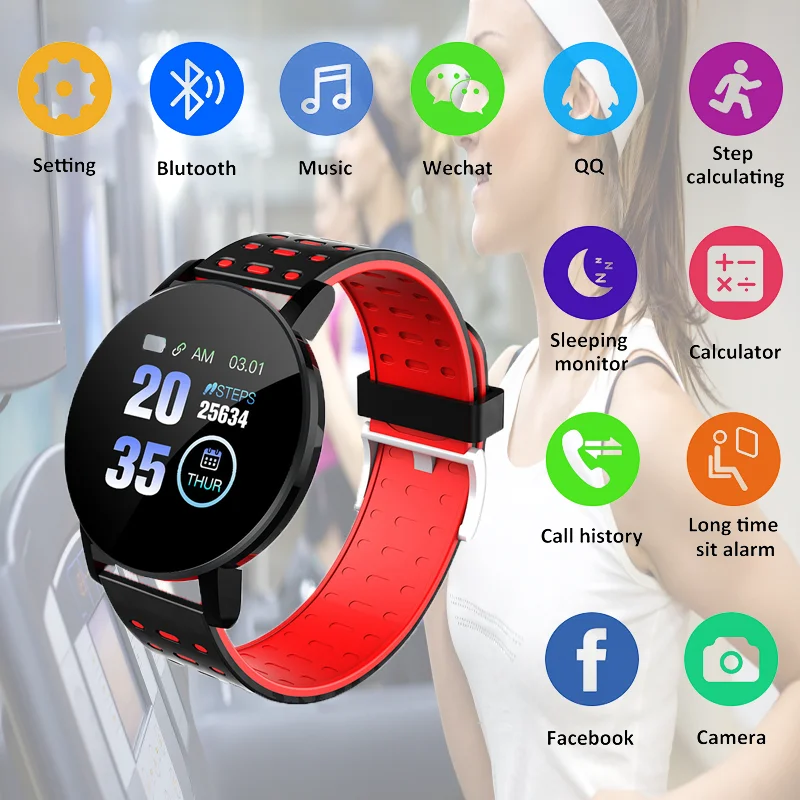 Мужские и женские умные часы 119S, круглые умные часы с монитором кровяного давления и кислорода, фитнес-браслет для Android и IOS