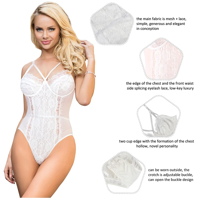 Белый кружевной боди размера плюс боди для женщин прозрачный сексуальный боди без рукавов комбинезоны с открытым шаговым швом RS80875