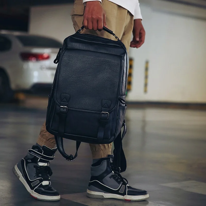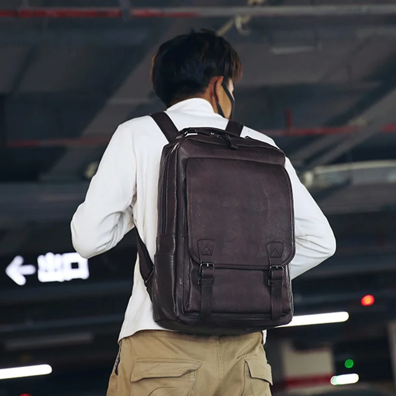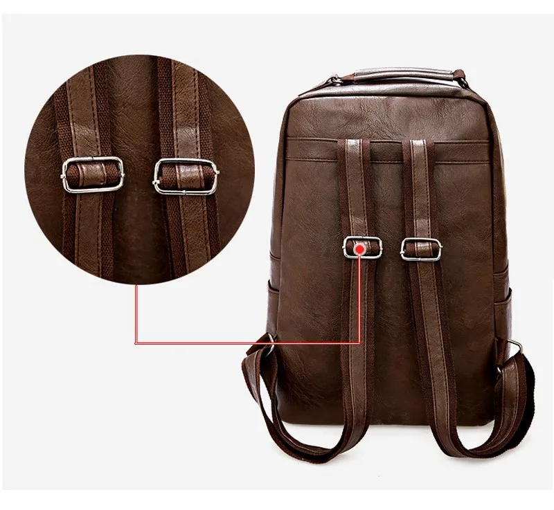 Вместительный рюкзак для ноутбука, мужские повседневные модные сумки для мужчин, ретро рюкзаки из искусственной кожи на молнии, мужские дорожные водонепроницаемые сумки для мужчин