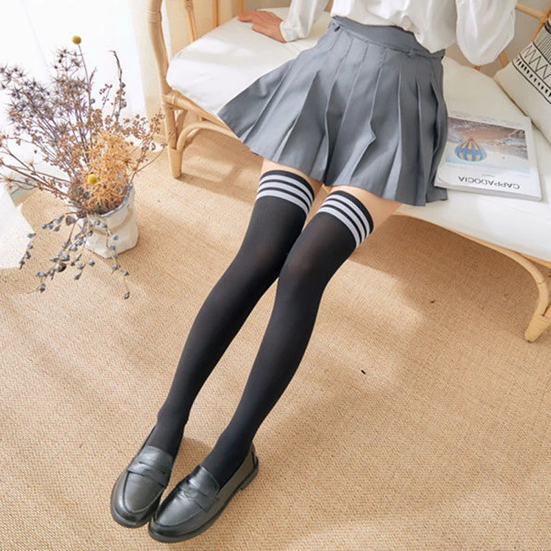 Женские Сексуальные Гольфы выше колена, Стрейчевые гольфы в полоску, соблазнительные гольфы, черные, белые
