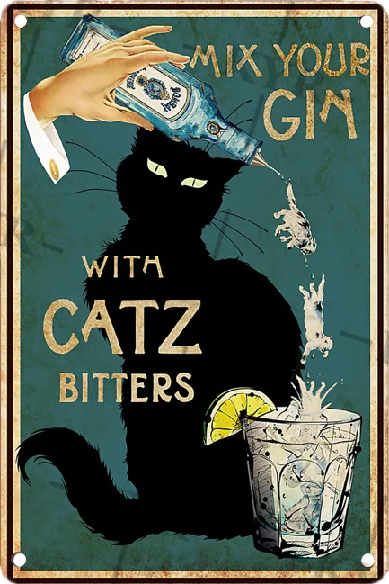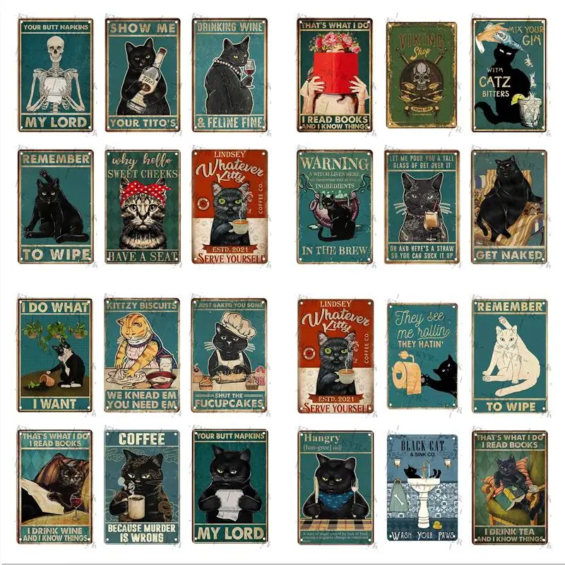 Классический каркас, пирожные, кофейный, белый, черный кот, металлический жестяной знак для бистро, ресторана, бара, потертый, искусственный декор, рекламный щит