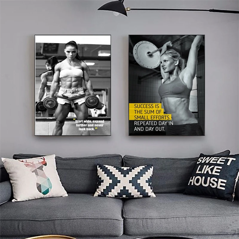 Картины на холсте для занятий фитнесом, привлекательный фотографический плакат и печать, настенные картины для украшения гостиной и дома