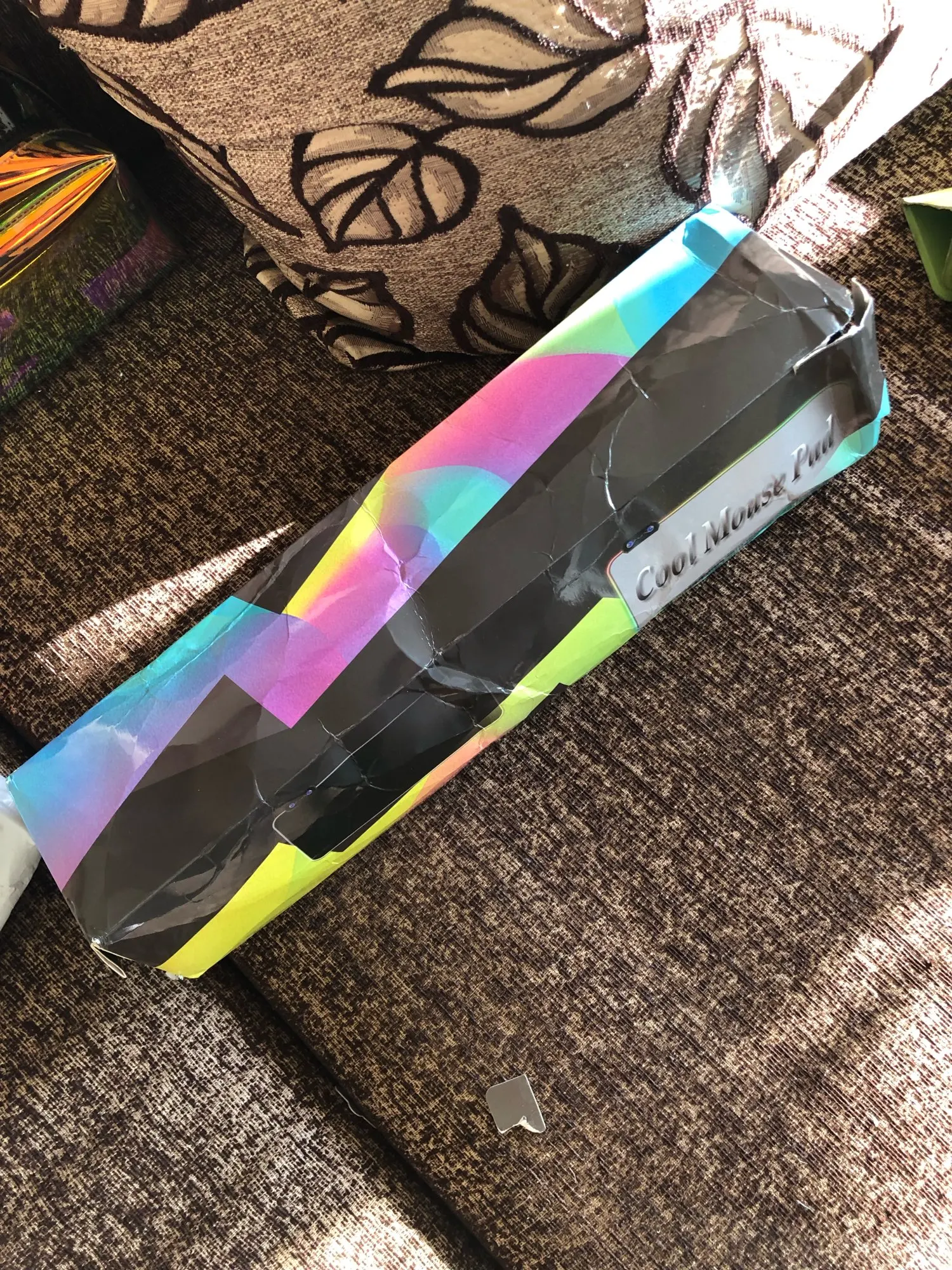 Коврик пришёл в течении 20 дней. Коробка была помята, но это не повлияло на целостность товара. Качество отличное, рисунок четкого качества, на обратной стороне коврик прорезиненный, к столу отлично прилегает. В комплекте шёл шнур для подсветки. Все хорошо работает, переключатель хорошо меняет цвета. Рекомендую. Брала самый большой размер. Спасибо продавцу)
