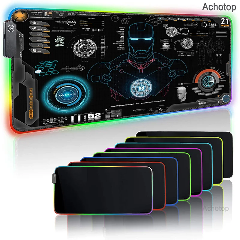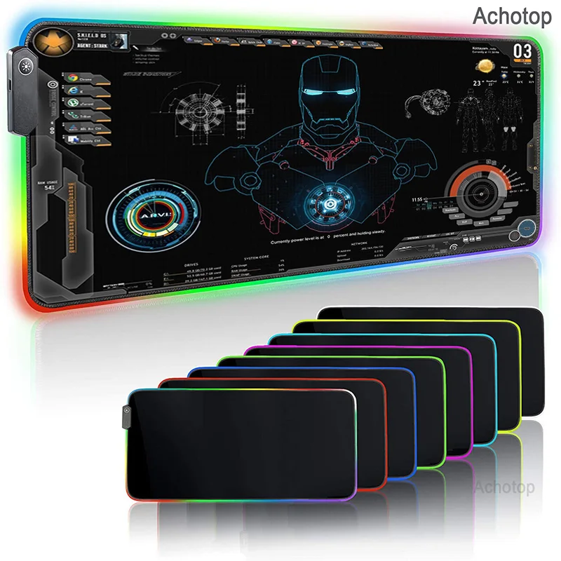 Коврик для мыши Ironmans RGB, большой игровой компьютерный коврик для мыши, игровые аксессуары XXL, коврик для мыши с подсветкой, Настольный коврик для клавиатуры и ПК