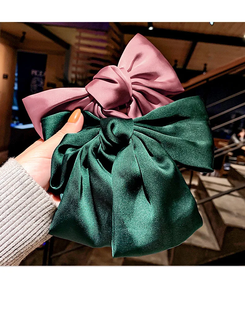 Женские заколки для волос, однотонные, с большим бантом, французские, заколка с бантиком