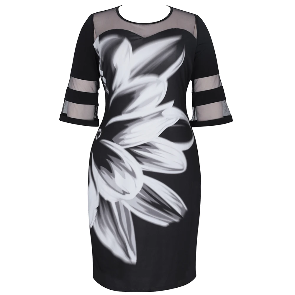 Женское облегающее платье с цветочным принтом, размеры до 6XL