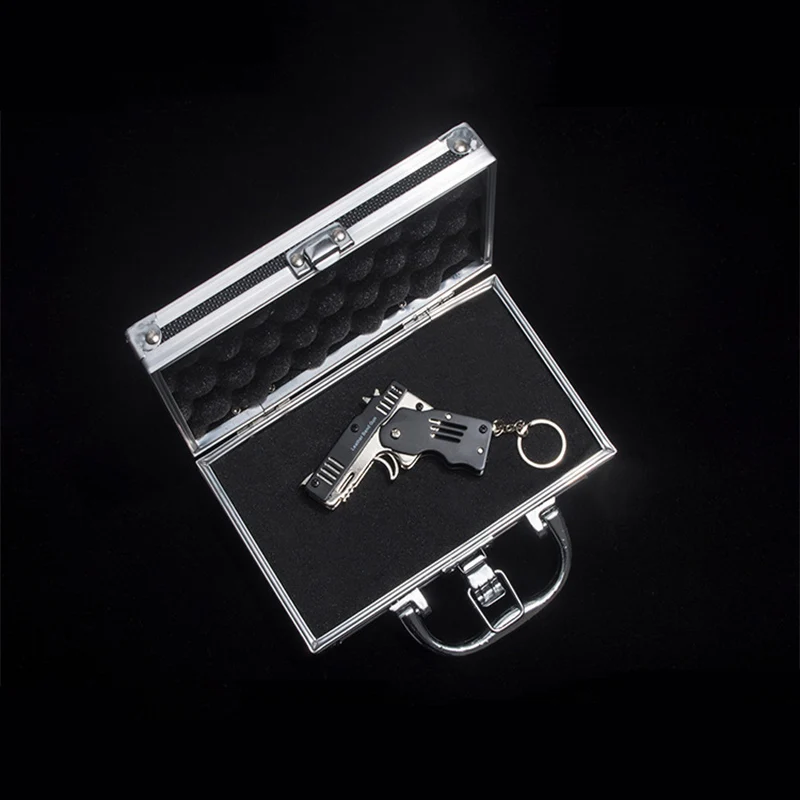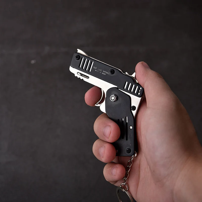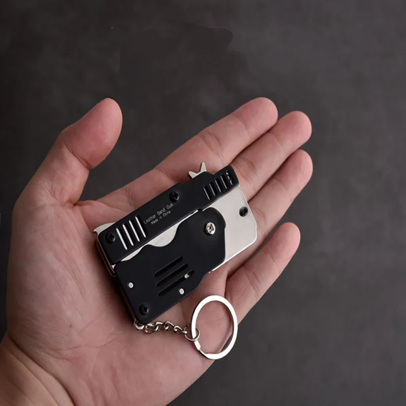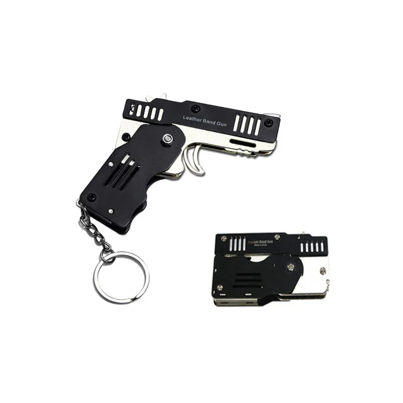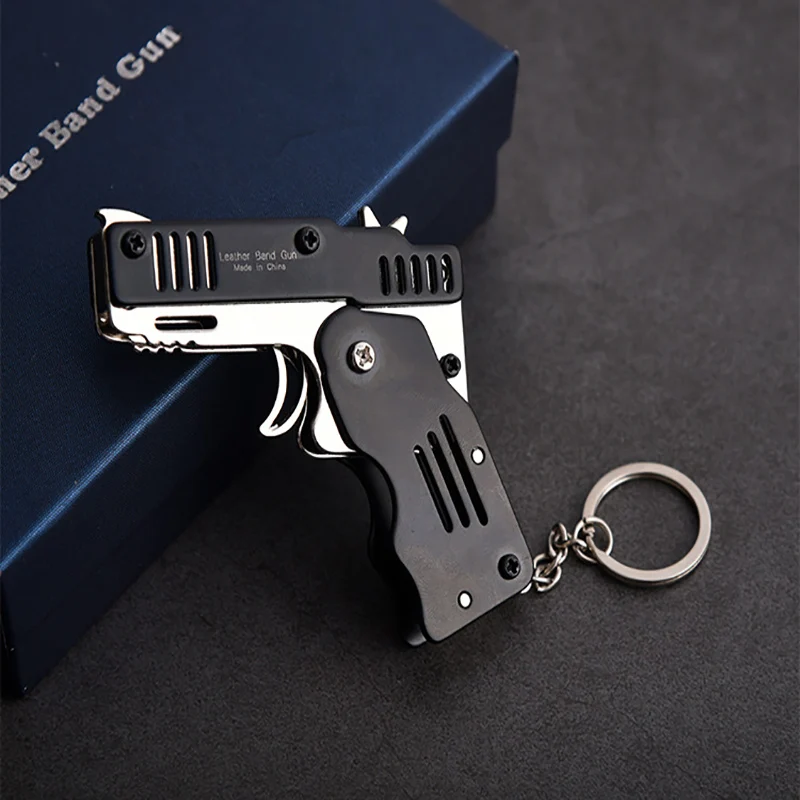 Игрушечный пистолет, Мини Складная Резиновая лента, металлический пистолет для мальчиков, уличный инструмент, брелок, подарок для детей для стрельбы, пусковая установка из нержавеющей стали для игр