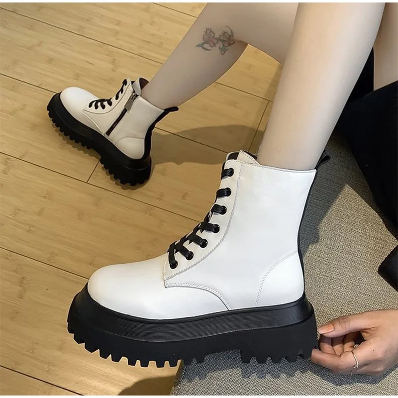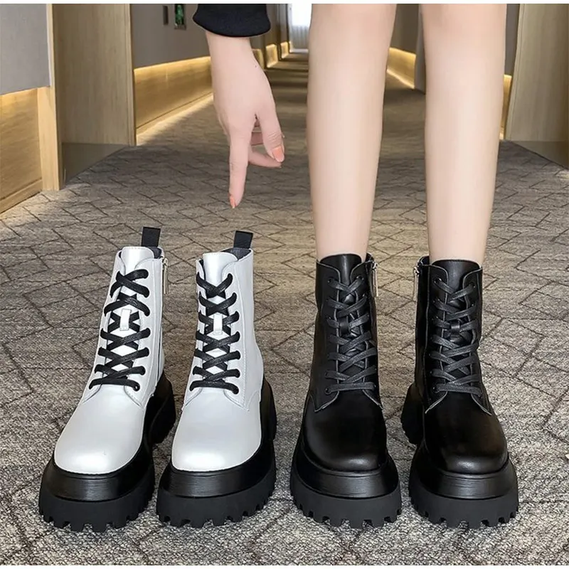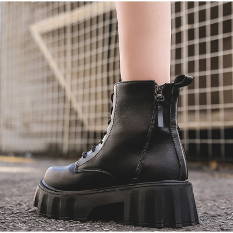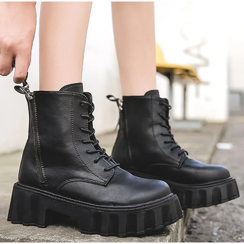 Модные ботильоны женские мотоциклетные ботинки женская обувь на толстой подошве, на молнии, из PU искусственной кожи, на шнуровке нескользящие женские короткие ботинки осень 2022