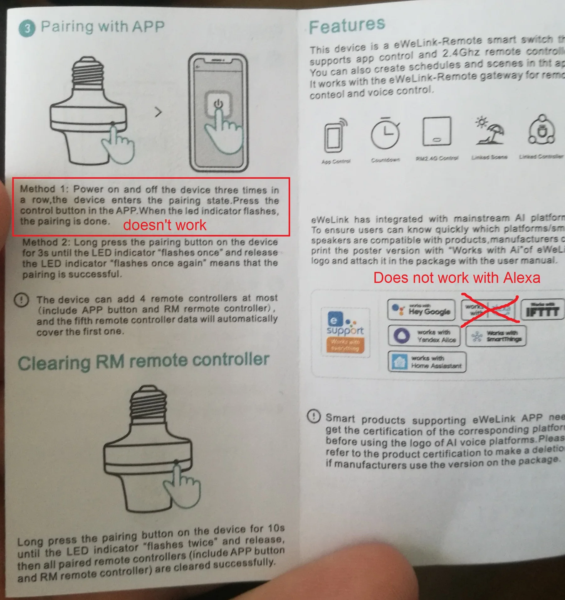 Для мобильных устройств он работает только с Bluetooth. Нет Wi-Fi соединения 2,4 ГГц, как описано. Также есть разница в дизайне. Мигающий свет отсутствует. Чтобы увидеть мигающий свет при сопряжении, нажмите на крошечную кнопку с краем ногтя и попробуйте посмотреть внутрь инструмента для мигающего синего света. Он также не реагирует через Alexa.