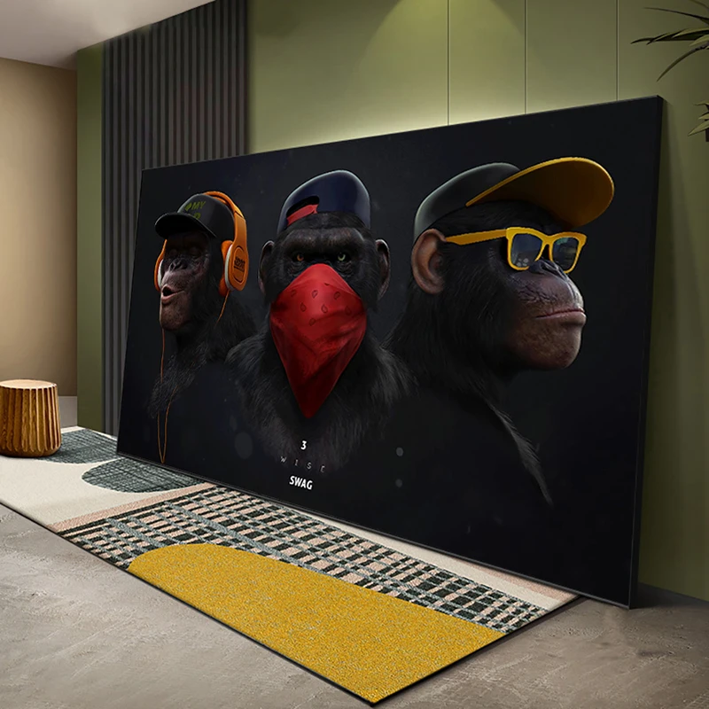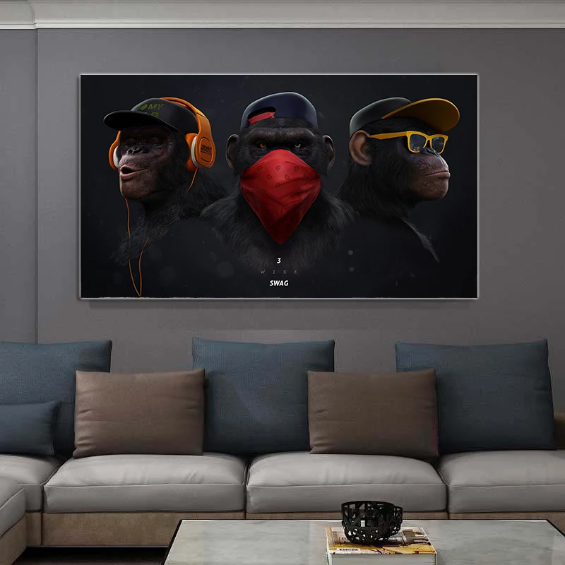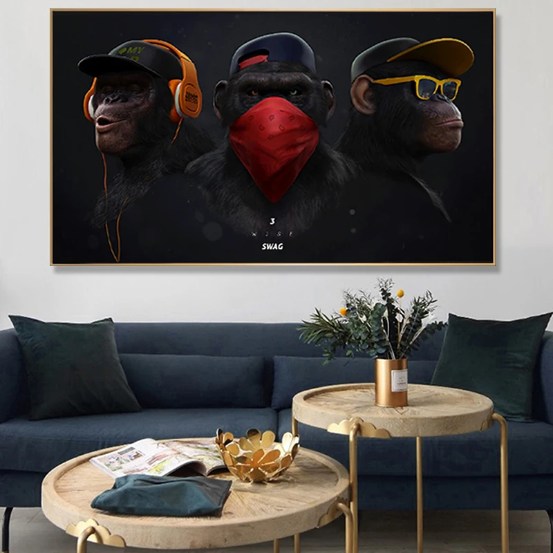 Плакат с изображением трех забавных горилл, обезьян, гарнитуры в очках, в современном стиле, Картина на холсте, украшение для гостиной, дома